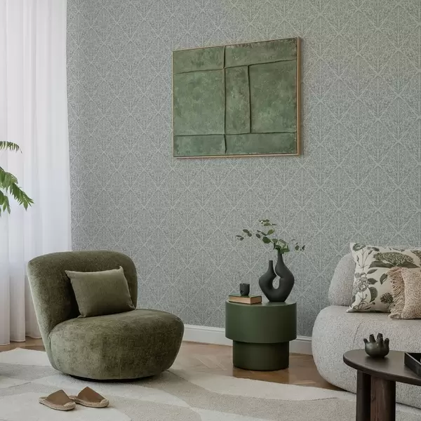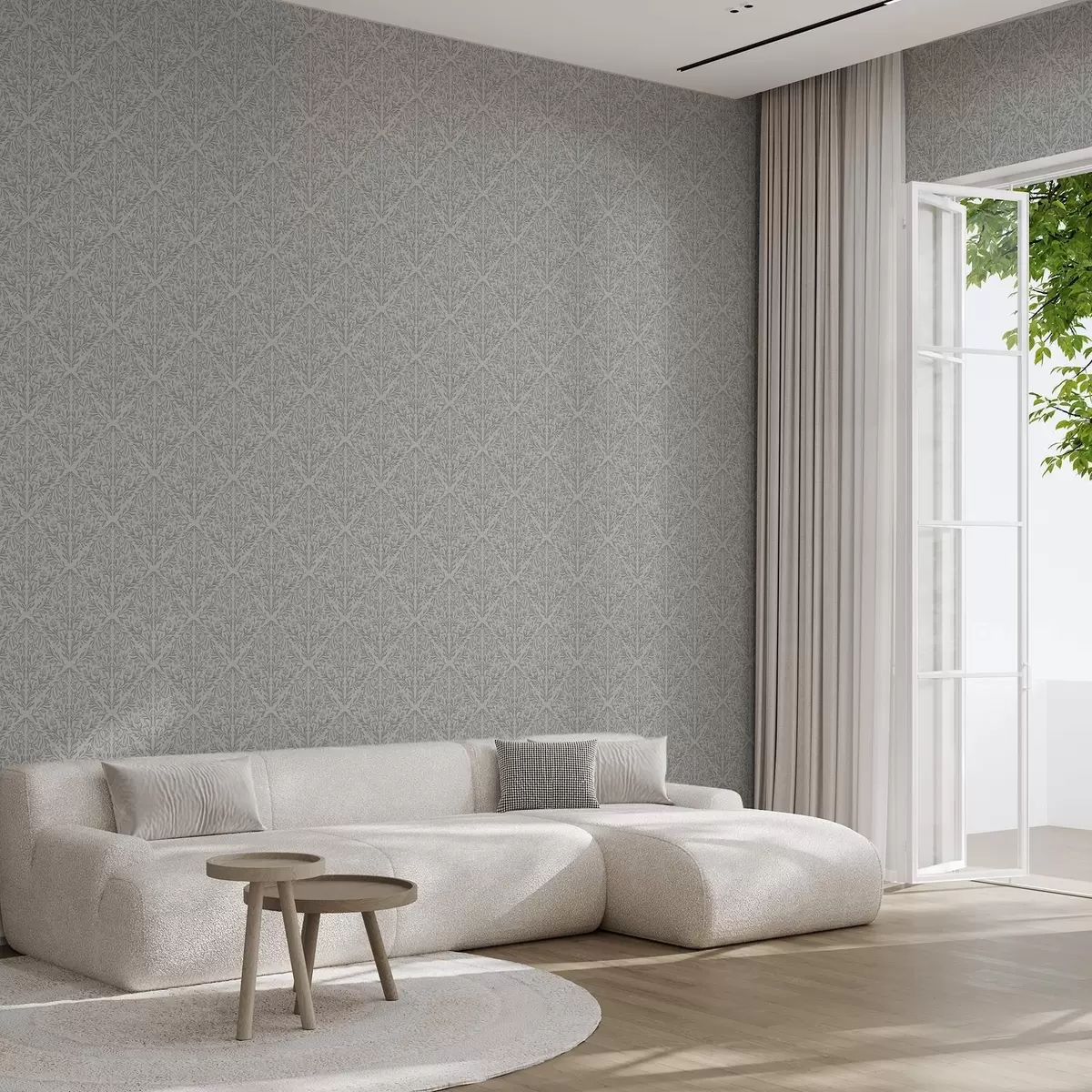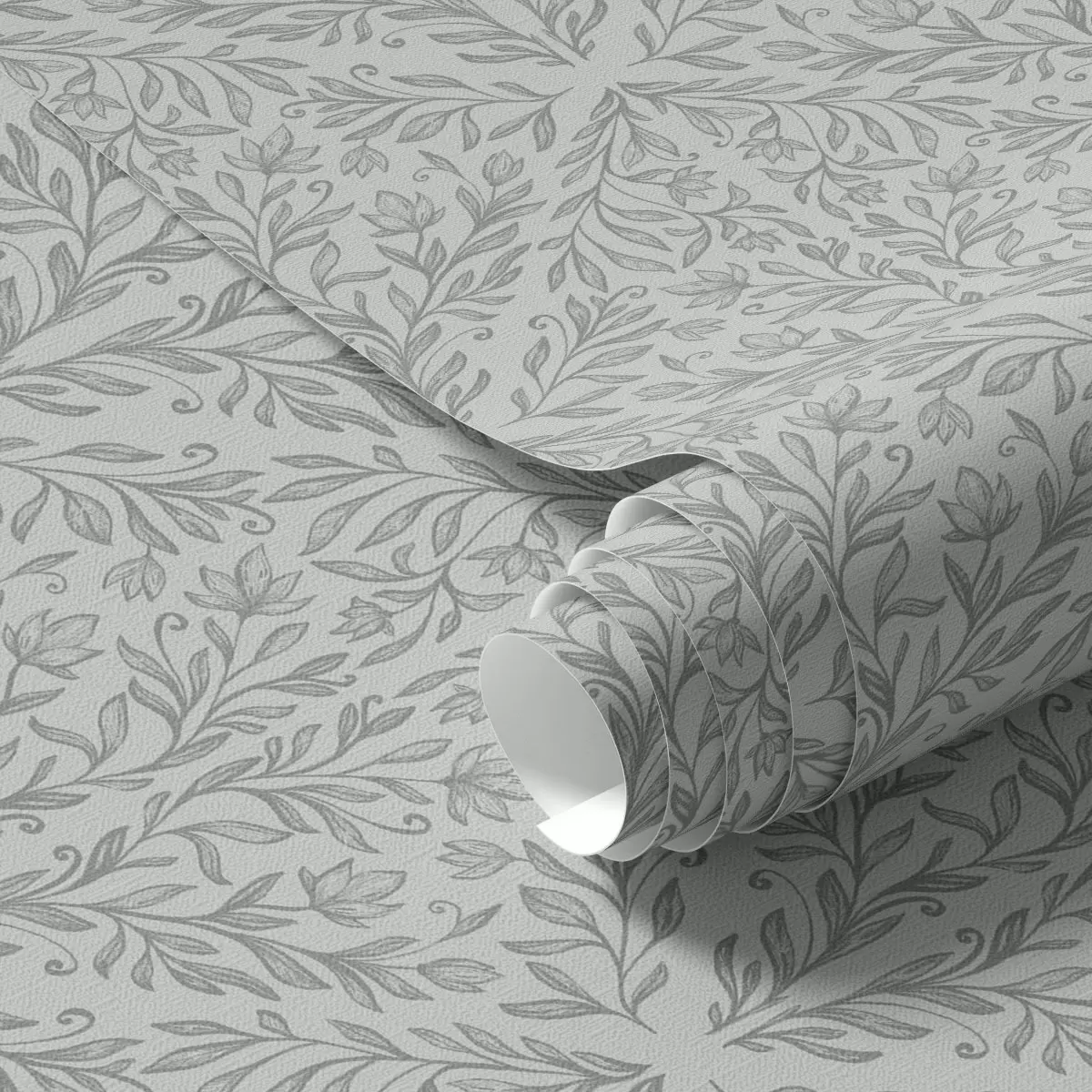 Papel de parede Damasco botânico em cinza claro com contornos suaves Nr. a00815v2