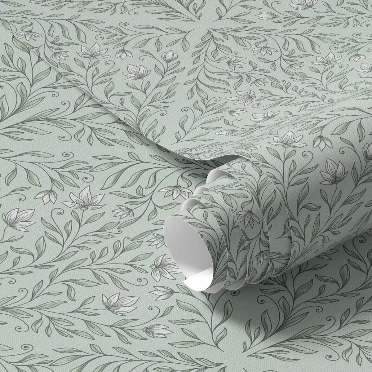 Papel de parede Lacy fotografa em verde pastel, com profundidade suave Nr. a00815v3