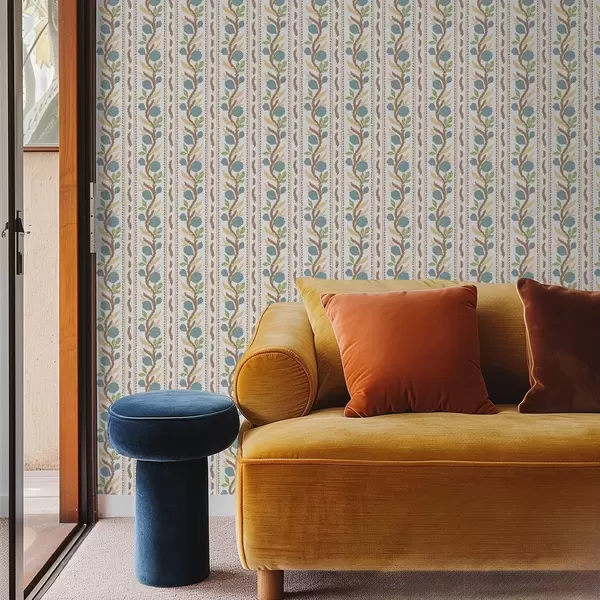 Papel de parede Listras verticais com flores azuis Nr. a00816v2