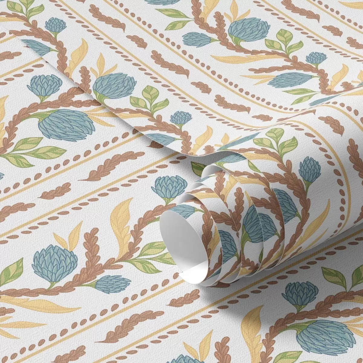 Papel de parede Listras verticais com flores azuis Nr. a00816v2