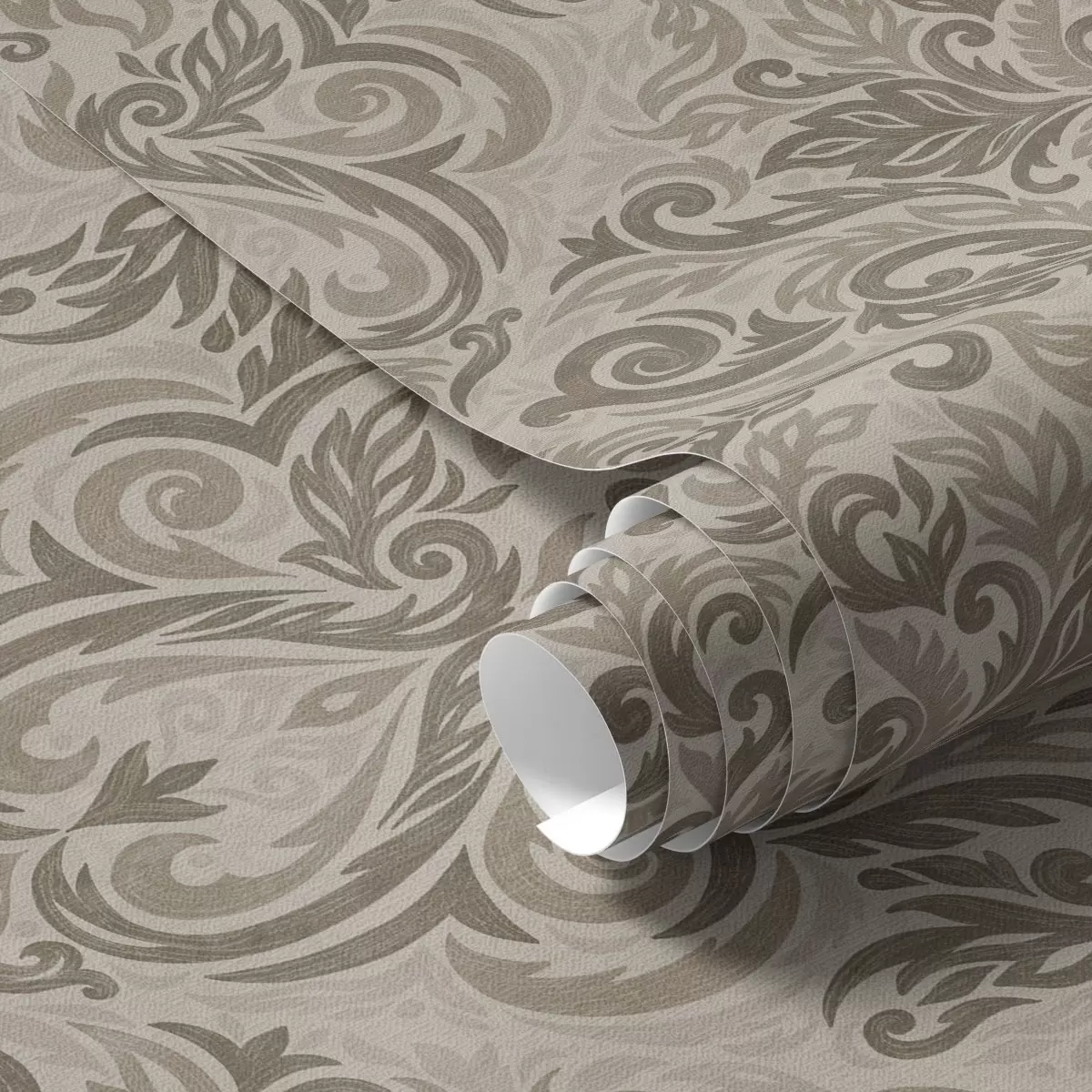 Papel de parede Damasco em tons quentes de cinza-marrom sobre fundo claro a00826v3