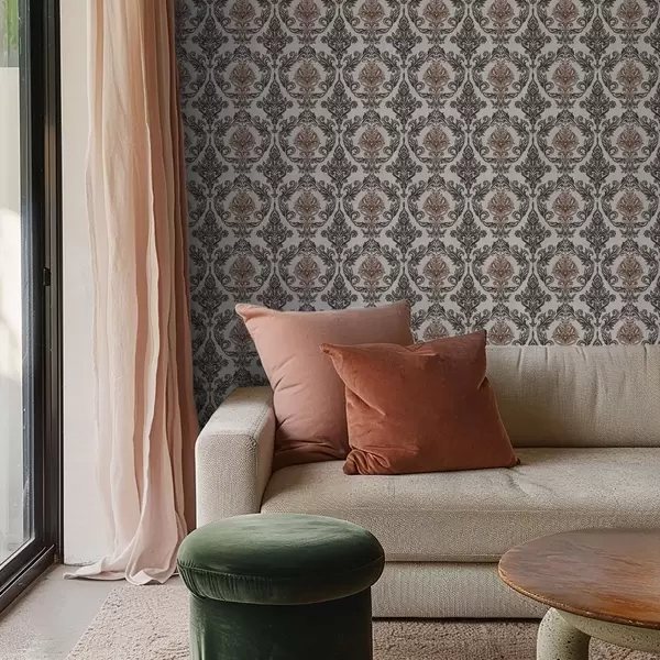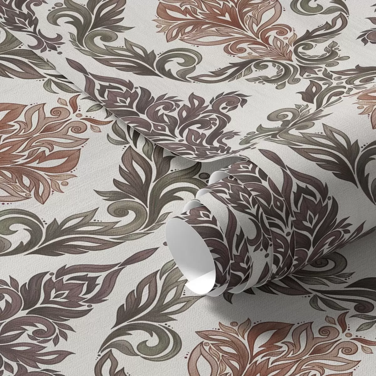Papel de parede Damasco com detalhes em marrom-cobre sobre fundo claro Nr. a00828v4