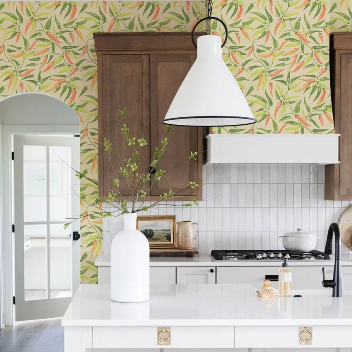 Papel de parede Galhos com pimentas vermelhas e verdes em um fundo quente Nr. a00829