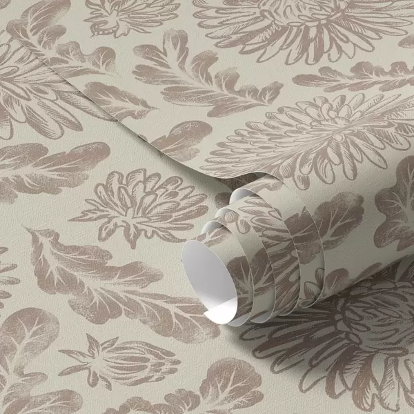 Papel de parede Crisântemos e folhas de carvalho em bege-marrom suave Nr. a00840