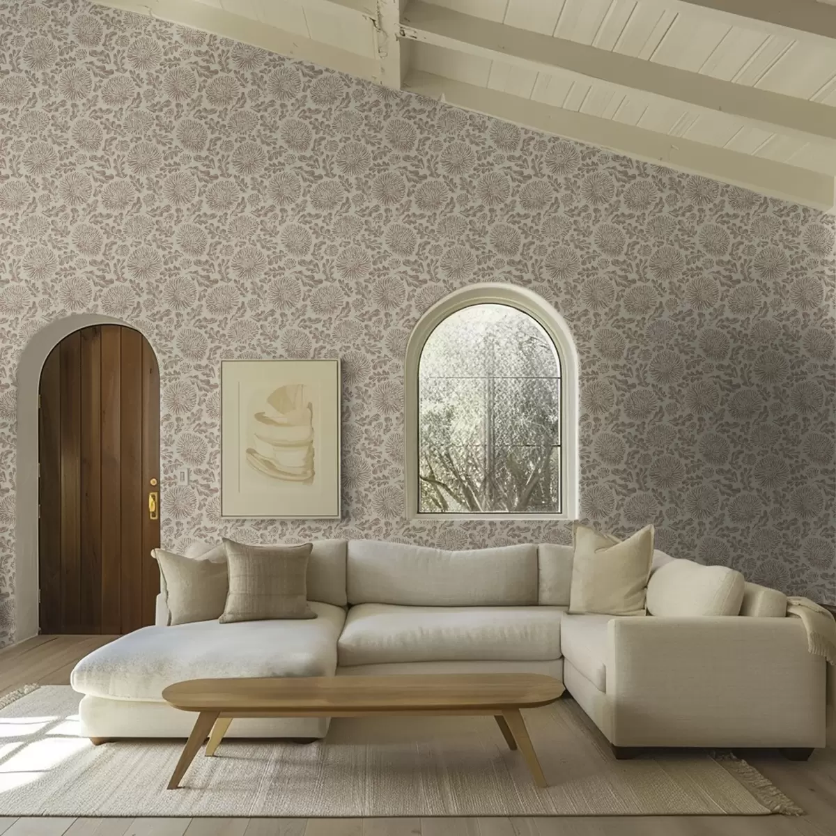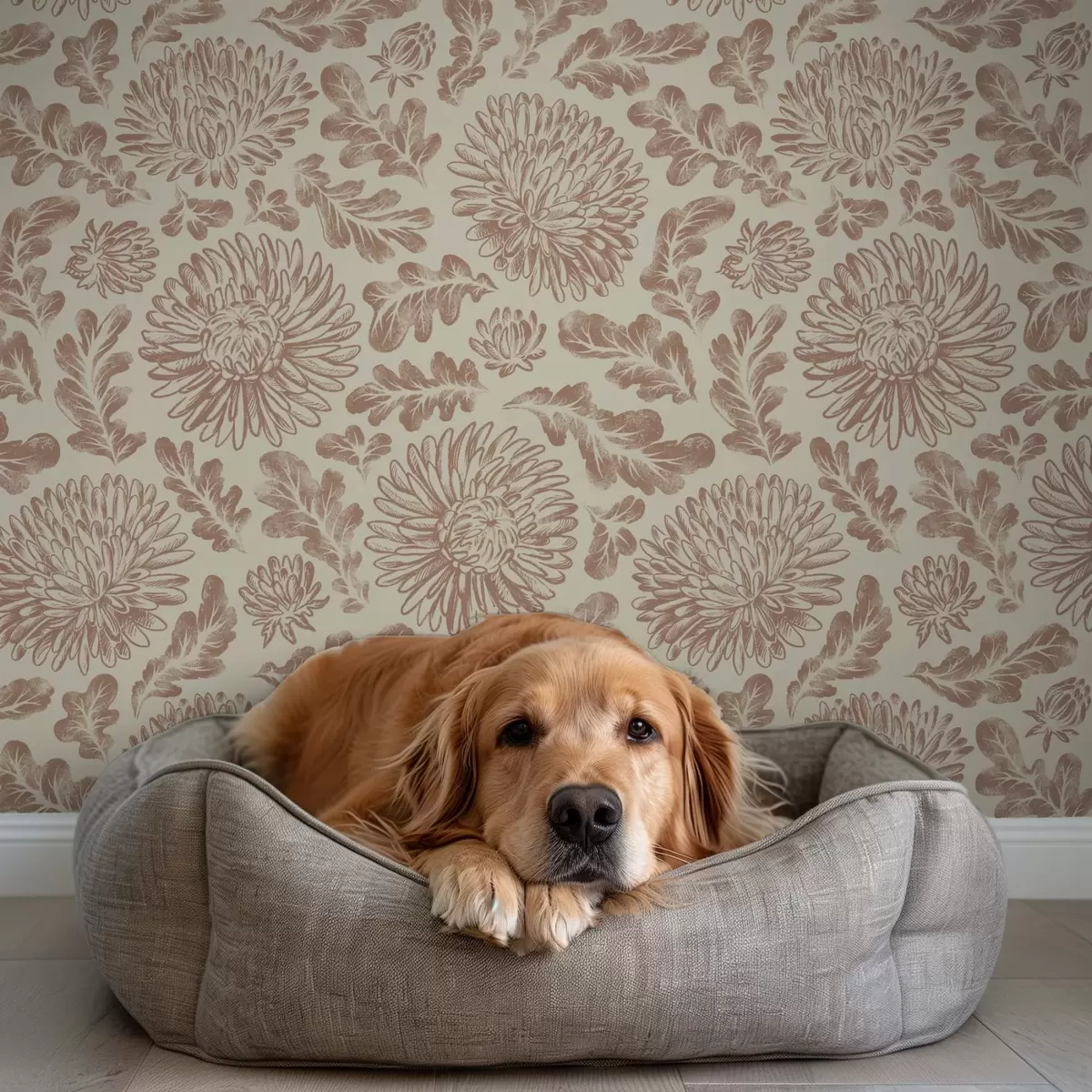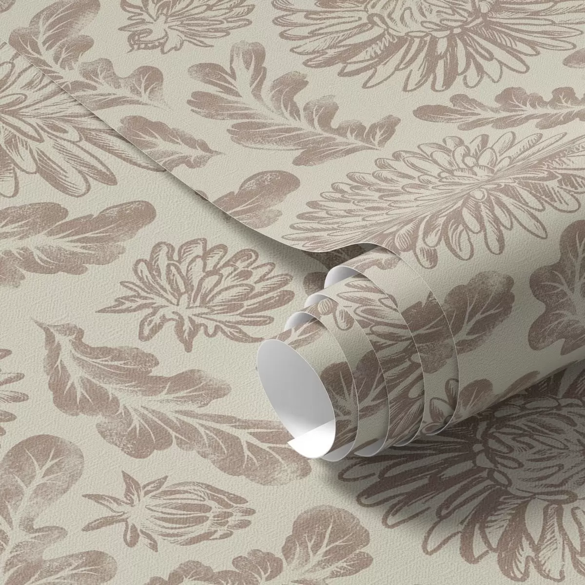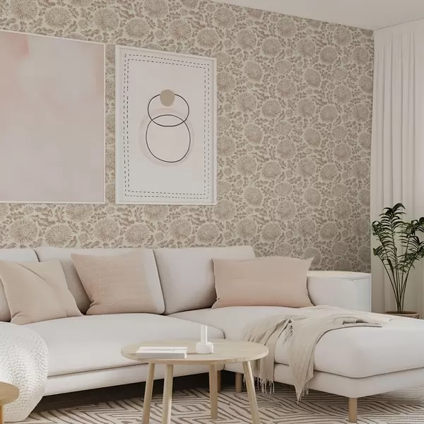 Papel de parede Crisântemos e folhas de carvalho em bege-marrom suave Nr. a00840