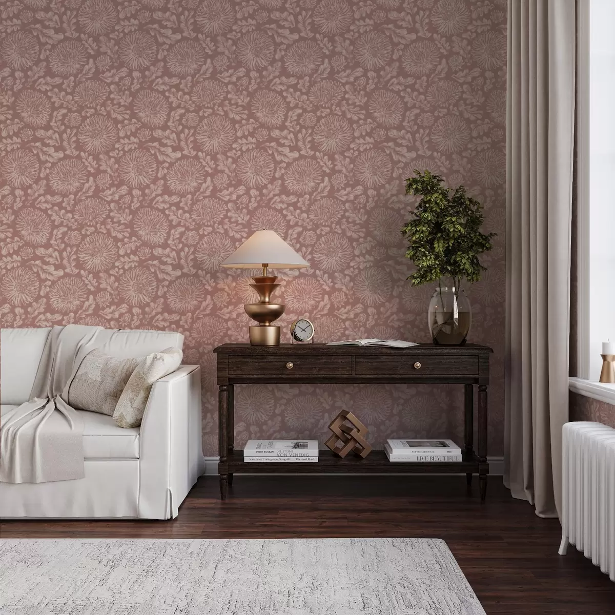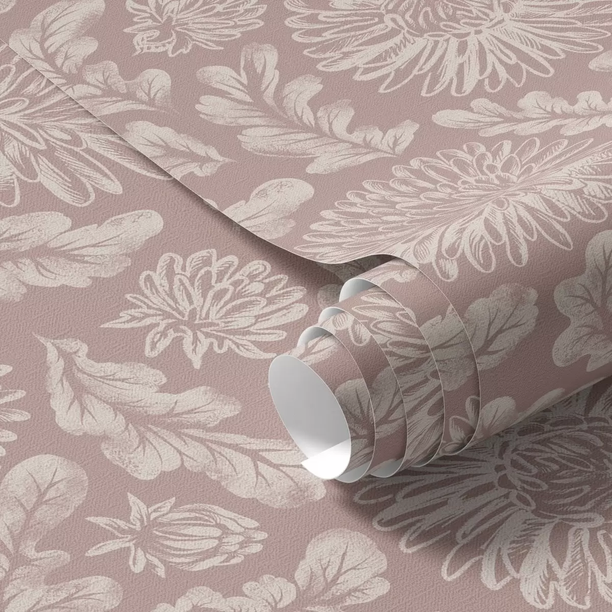 Papel de parede Crisântemos creme em rosa empoeirado Nr. a00840v2
