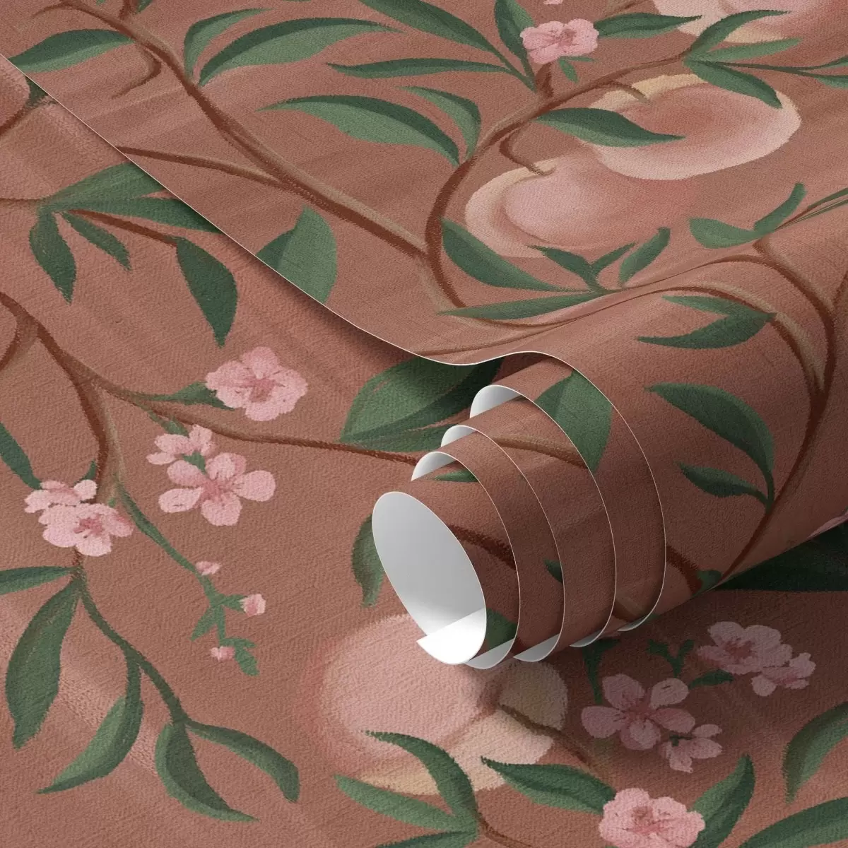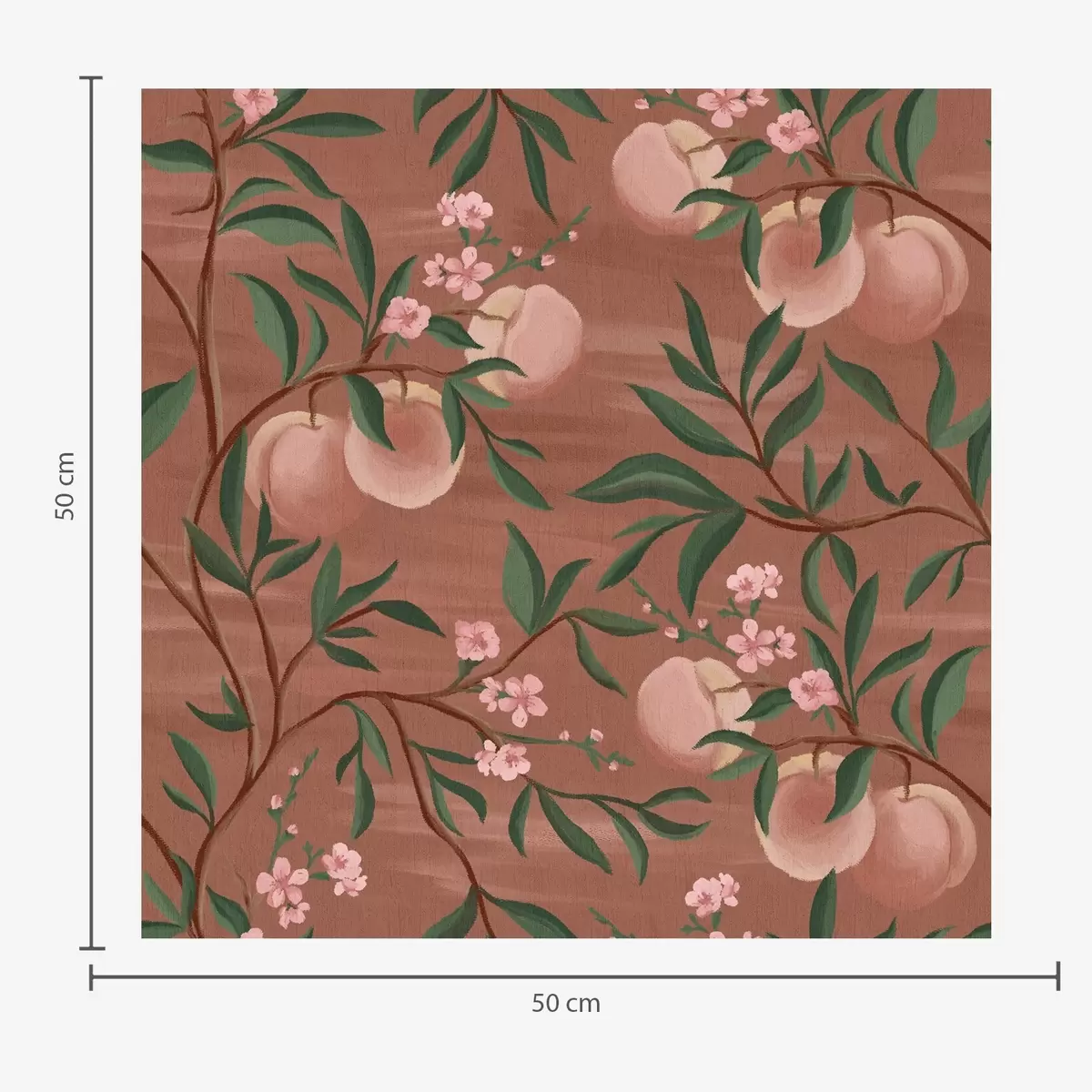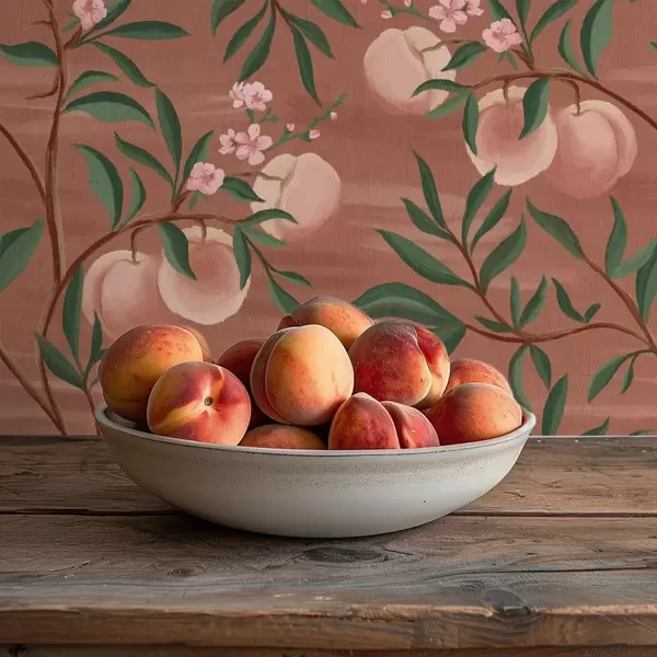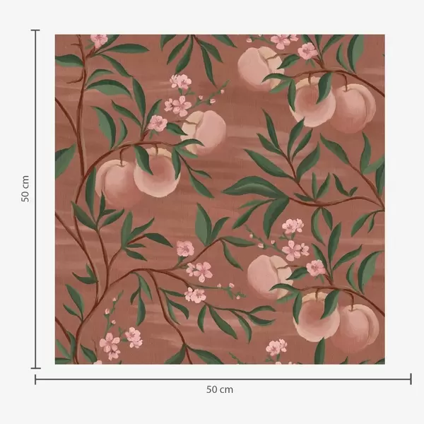 Papel de parede Pêssegos em galhos com flores rosadas, solo terracota Nr. a00856