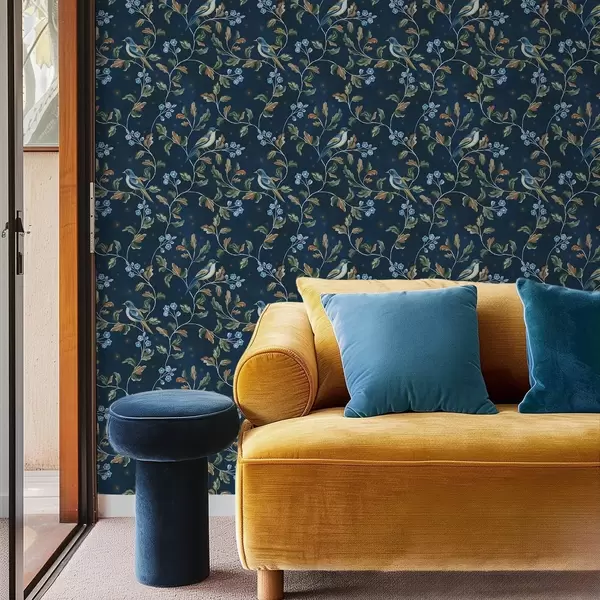 Papel de parede Seios em galhos, fundo azul noturno com faíscas Nr. a00858
