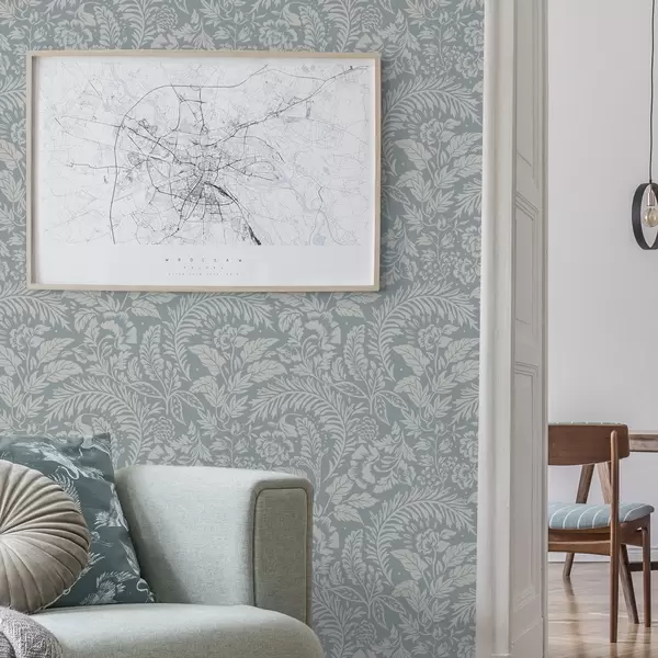 Papel de parede Padrão floral monocromático sobre fundo cinza-azulado Nr. a00859