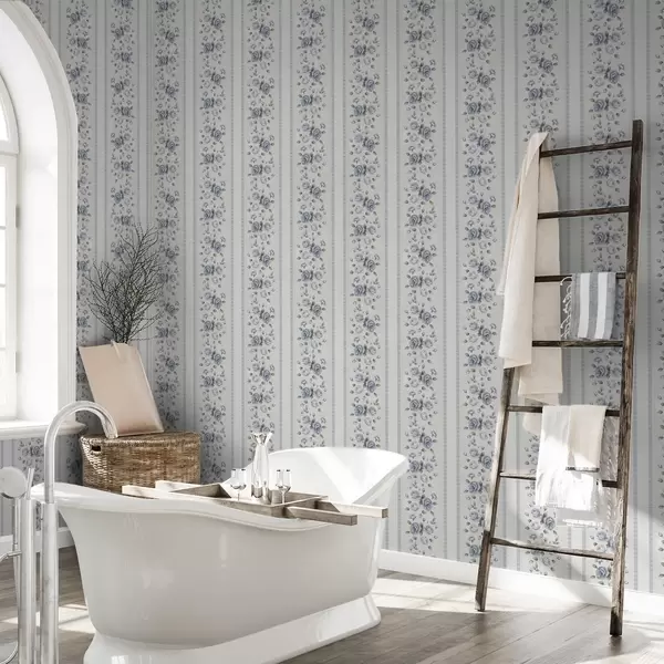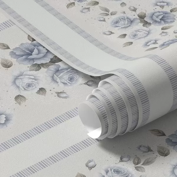 Papel de parede Rosas azuis em faixas verticais sobre um fundo claro Nr. a00860