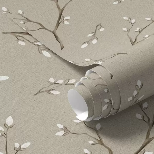 Papel de parede Galhos com botões brancos sobre fundo cinza-claro Nr. a00861
