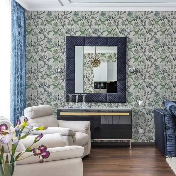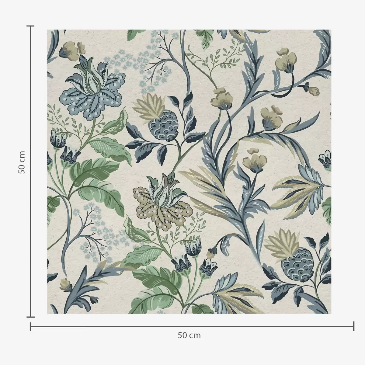 Papel de parede Flores e folhas folclóricas azul-esverdeadas sobre fundo creme Nr. a00863