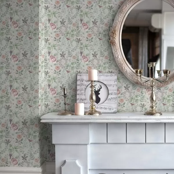 Papel de parede Jardim em tons pastéis com rosas, samambaias e uvas Nr. a00867