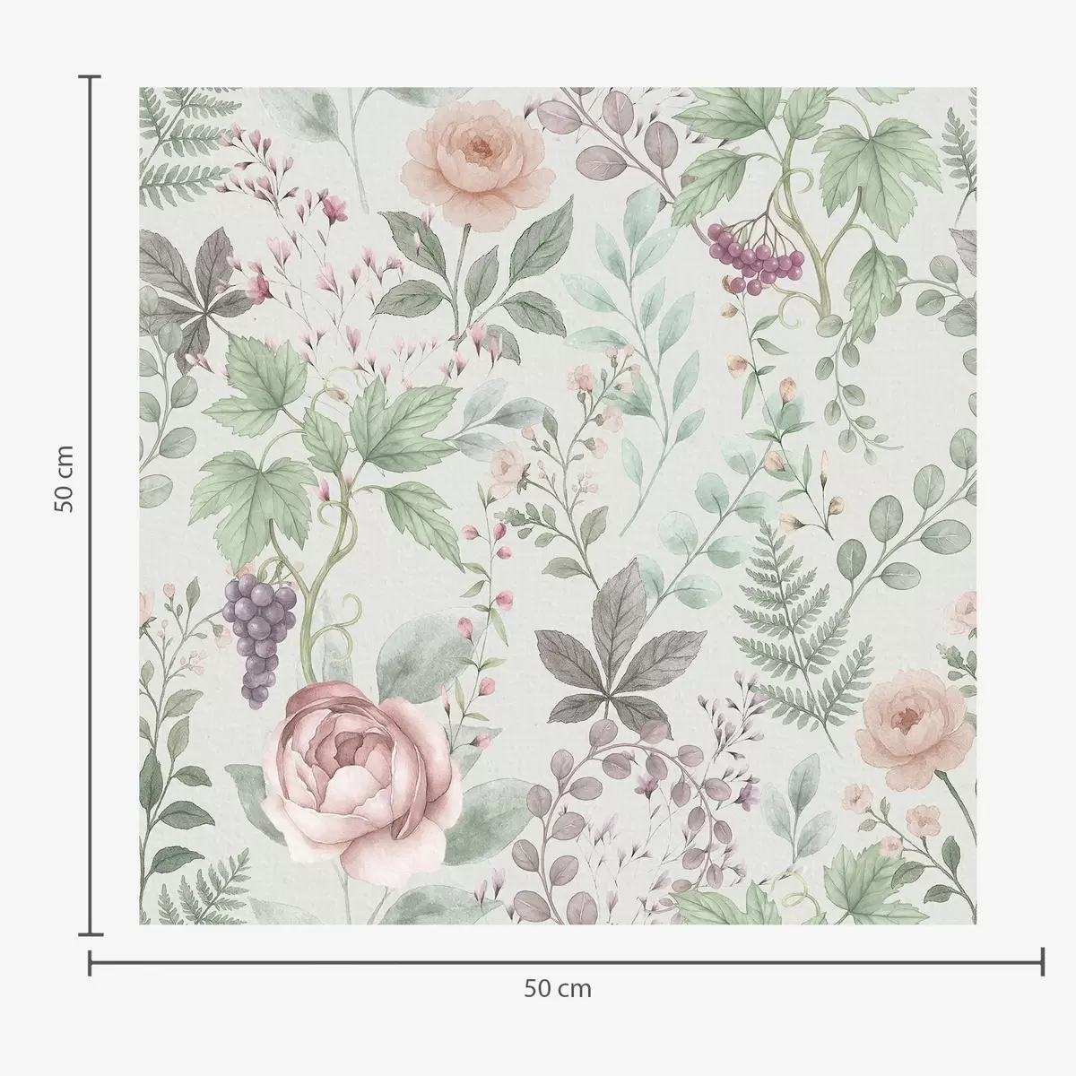 Papel de parede Jardim em tons pastéis com rosas, samambaias e uvas Nr. a00867