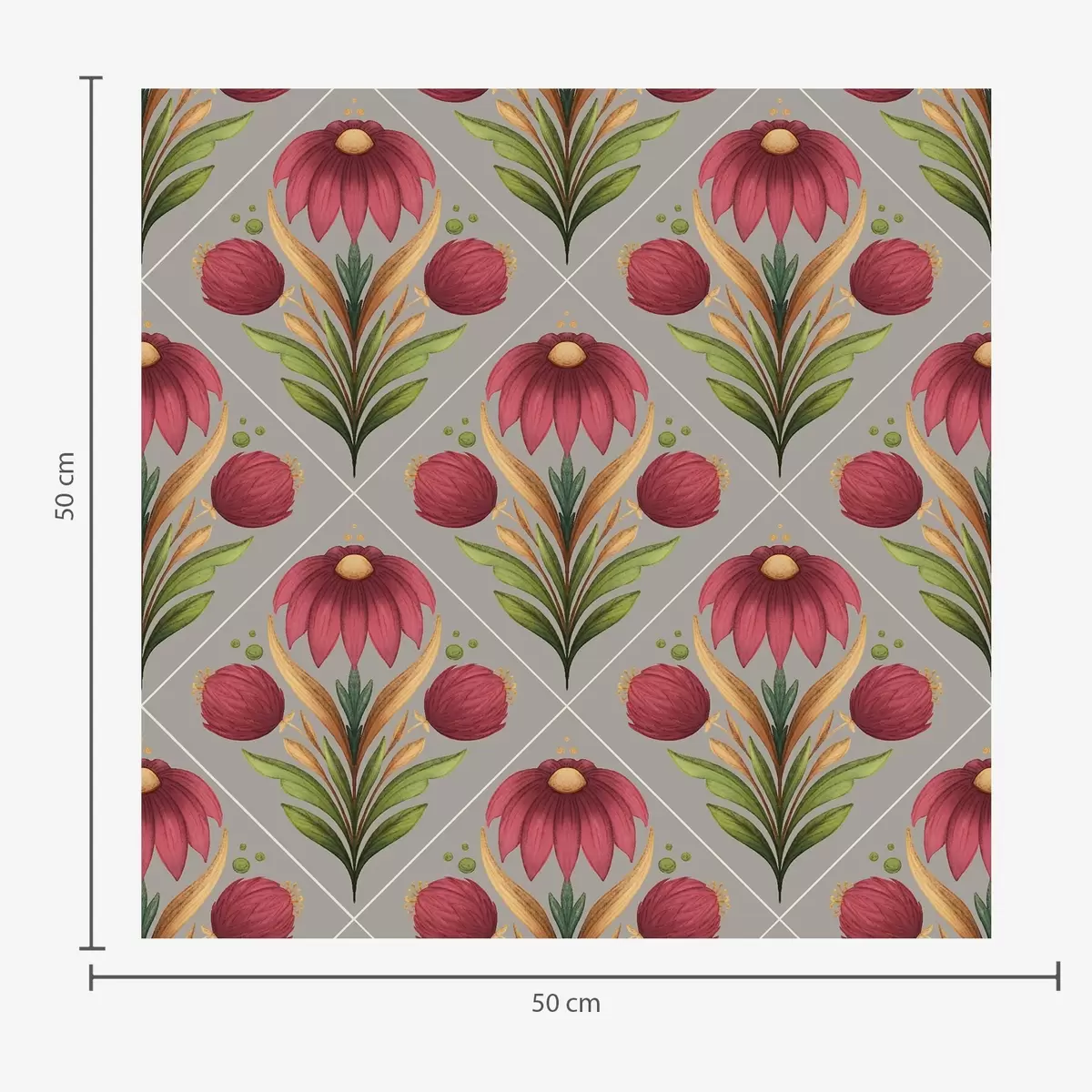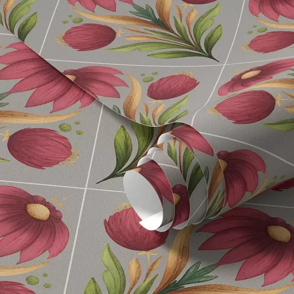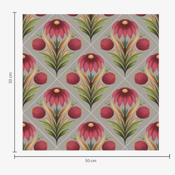 Papel de parede Ornamento floral simétrico sobre fundo cinza com diagonais Nr. a00869