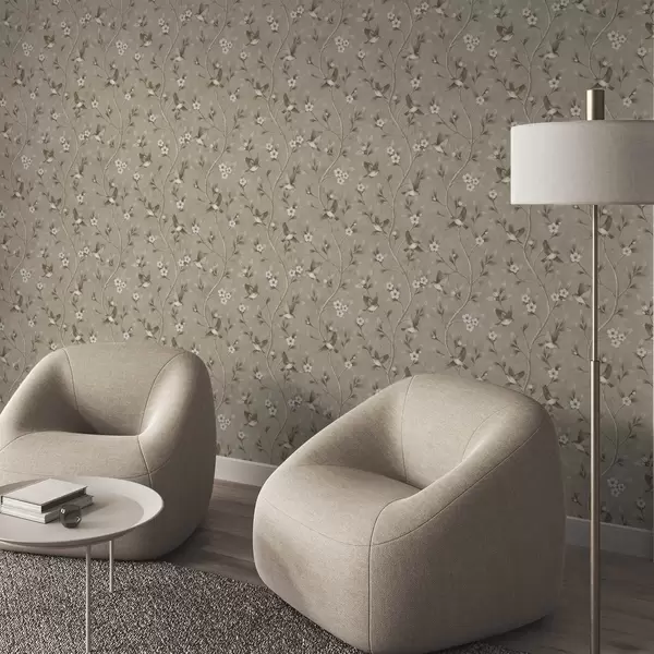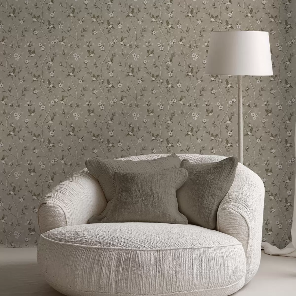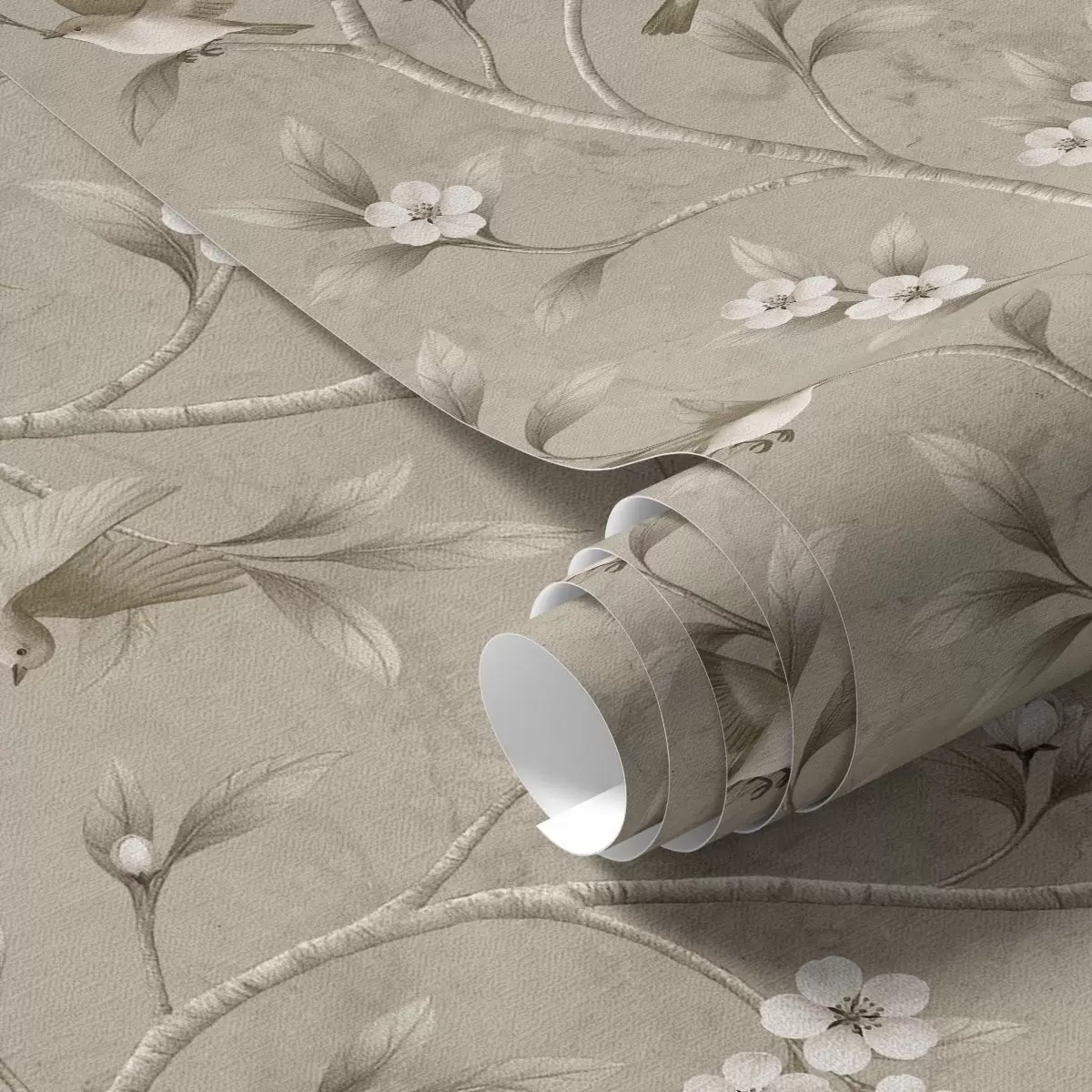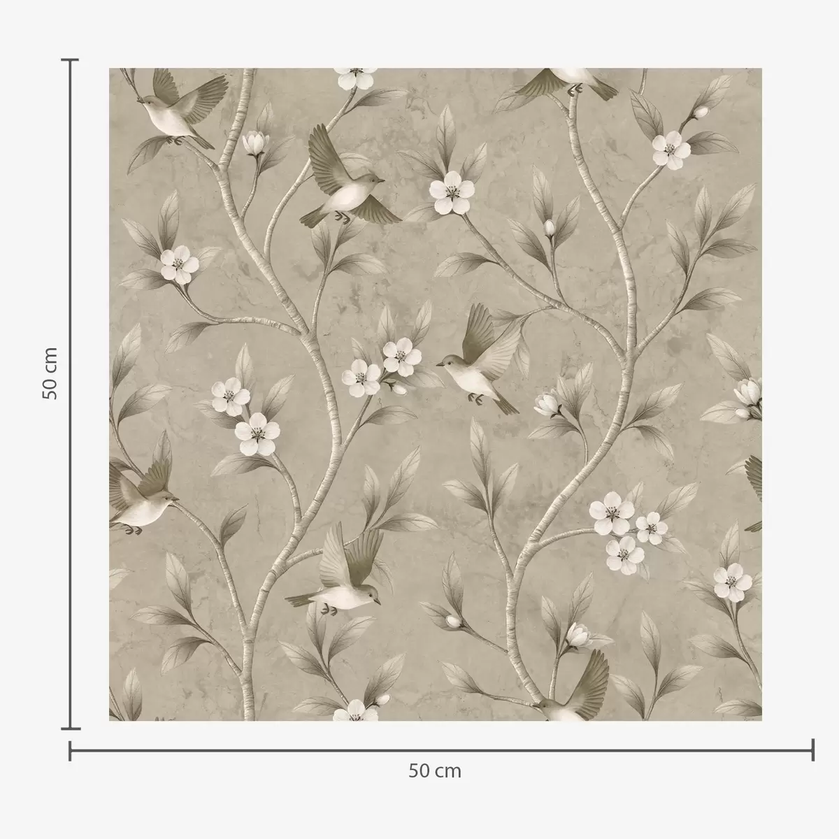 Papel de parede Pássaros e galhos floridos em tons sépia quentes Nr. a00882