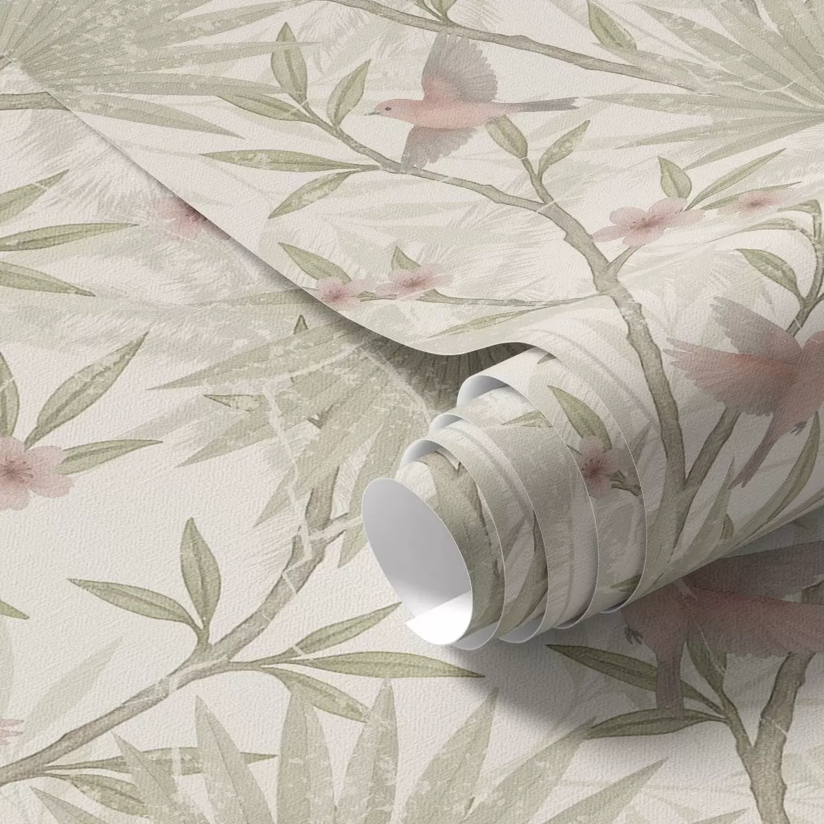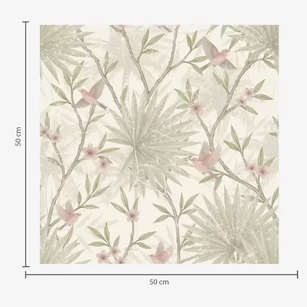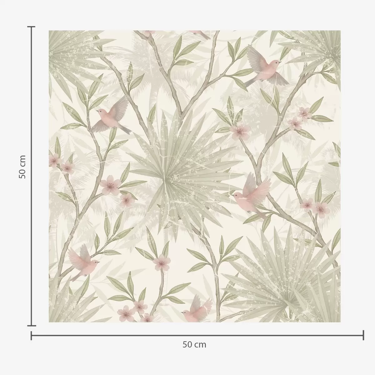 Papel de parede Delicados pássaros cor-de-rosa entre folhas de palmeira Nr. a00883