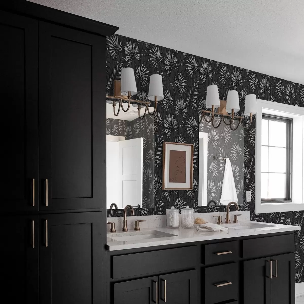 Papel de parede Folhas de palmeira em preto e branco sobre fundo escuro Nr. a00891