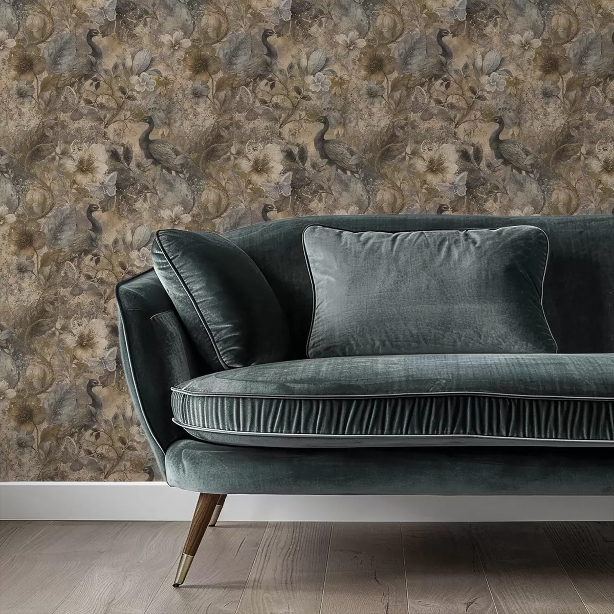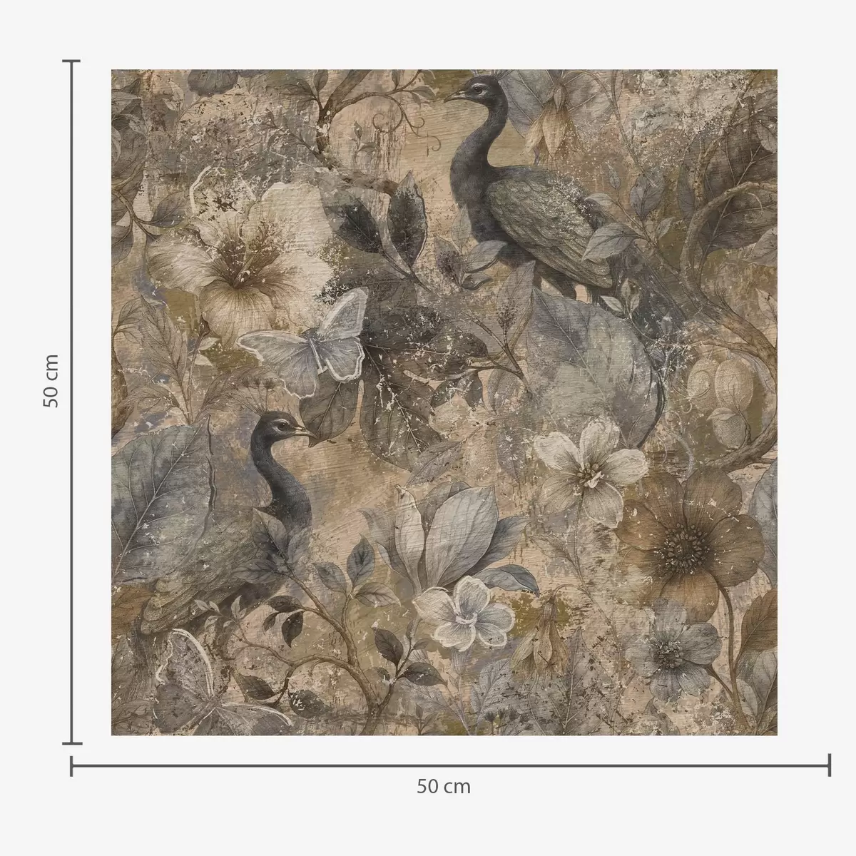 Papel de parede Colagem floral envelhecida com pavões e borboletas Nr. a00897