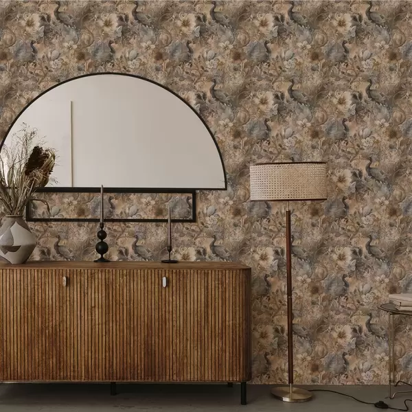 Papel de parede Colagem floral envelhecida com pavões e borboletas Nr. a00897