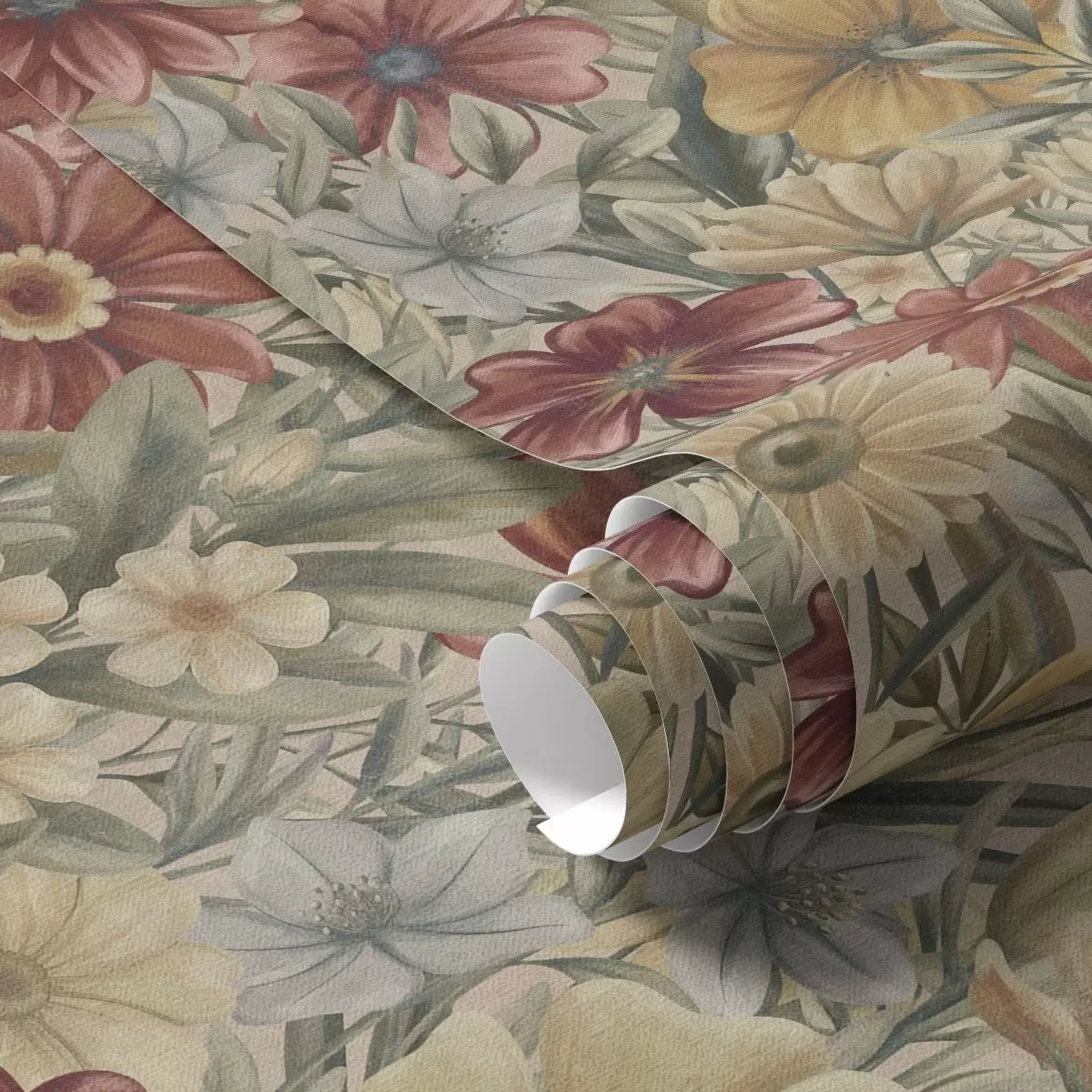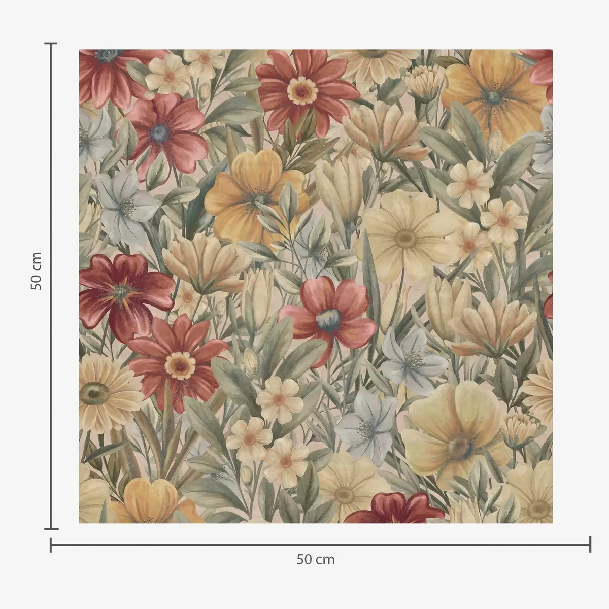 Papel de parede Campo vintage florido em tons quentes de amarelo, vermelho e salva Nr. a00906