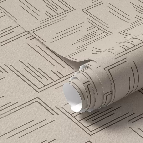 Papel de parede Grandes quadrados de canto em tom cacau com preenchimentos de linhas variadas, areia Nr. a00913