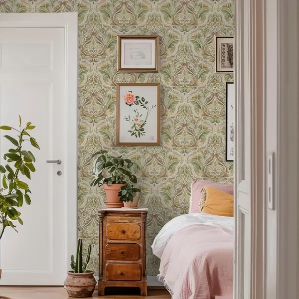 Papel de parede Espirais folhosas em tons de verde e ocre quente pintadas em aquarela Nr. a00927