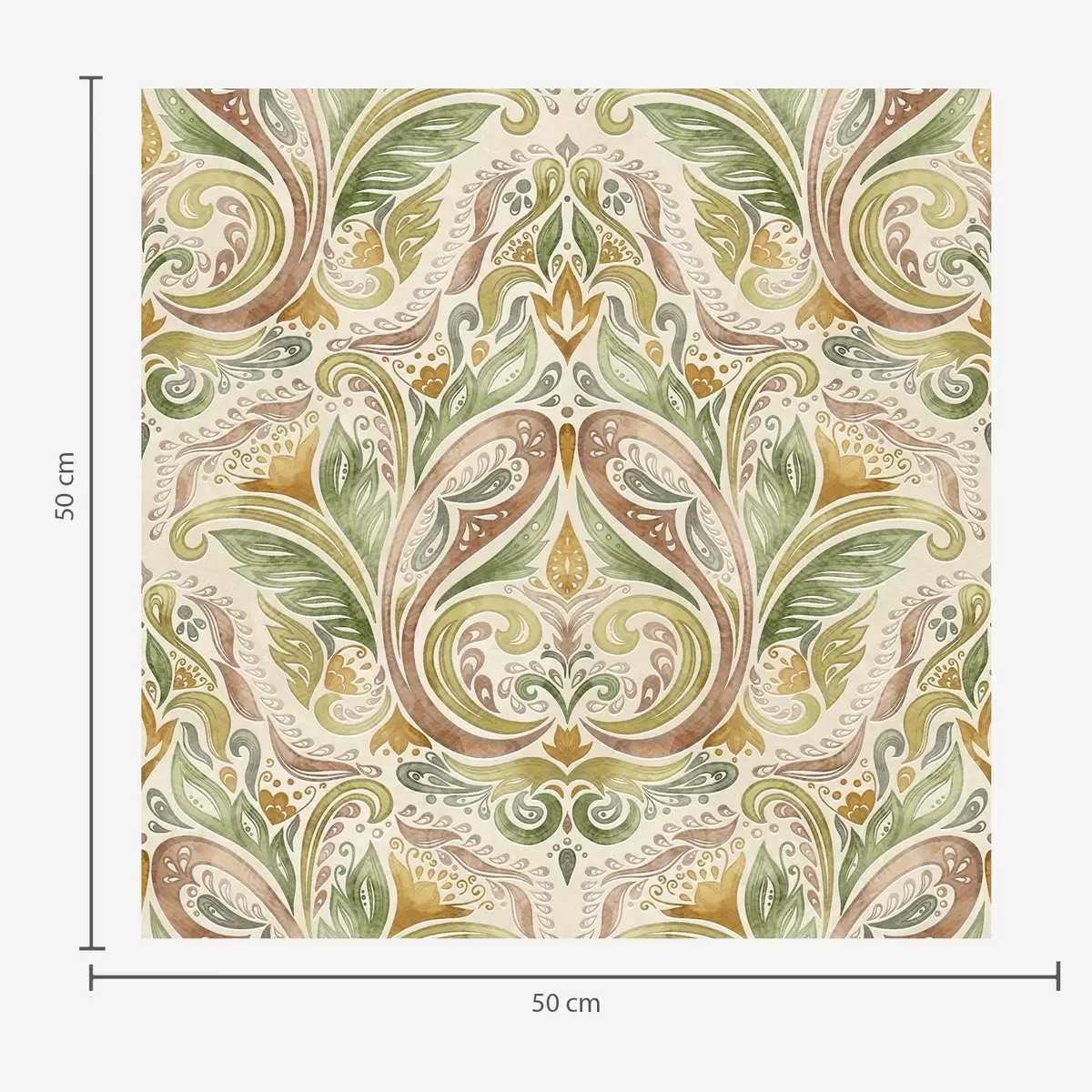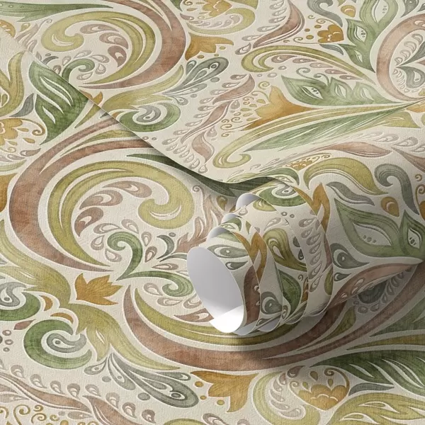 Papel de parede Espirais folhosas em tons de verde e ocre quente pintadas em aquarela Nr. a00927