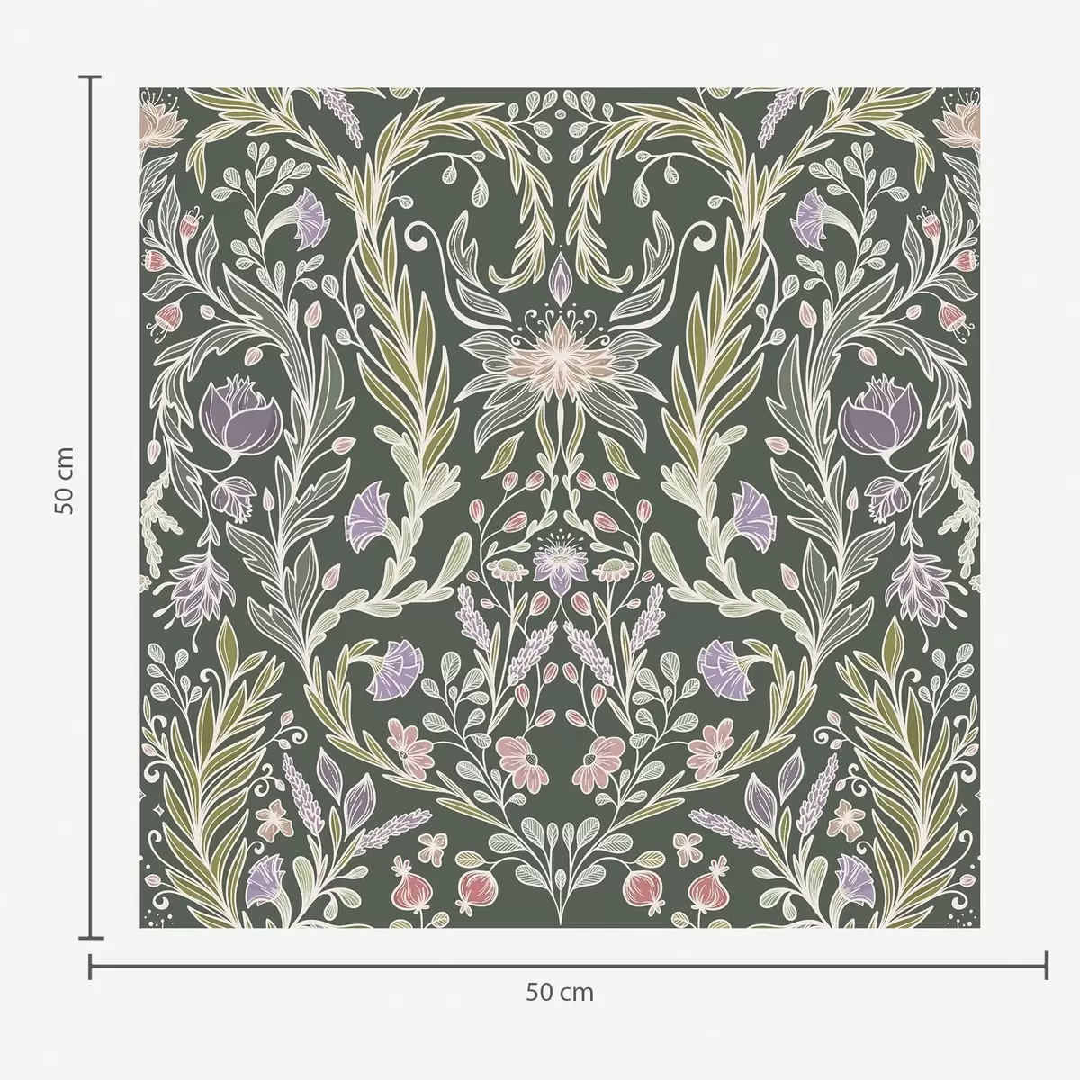 Papel de parede Ornamento floral simétrico sobre fundo verde escuro Nr. a00928
