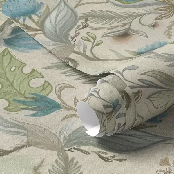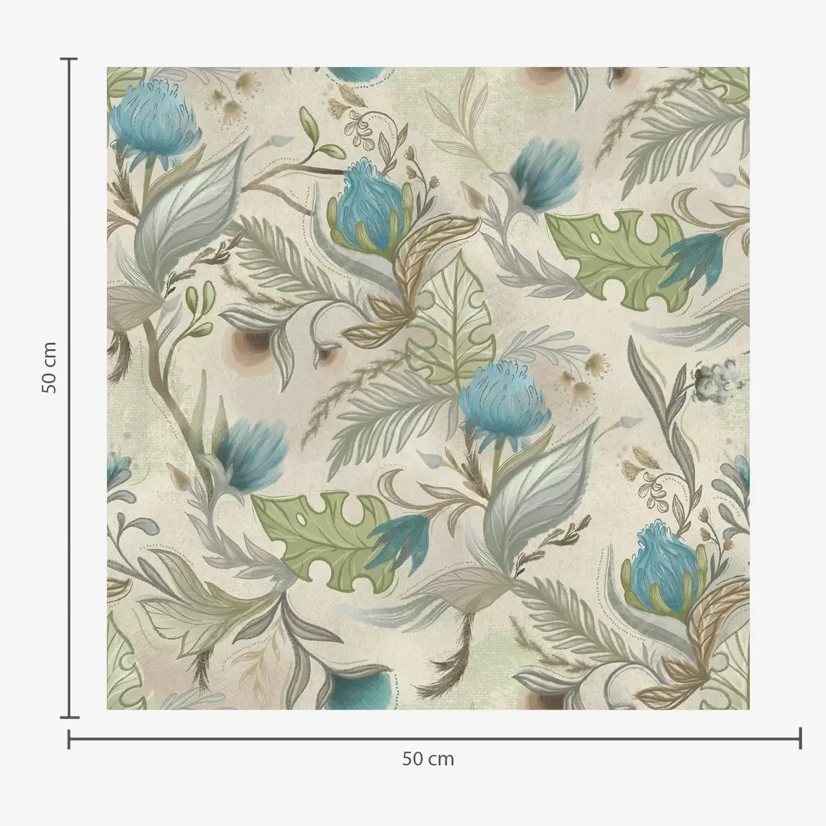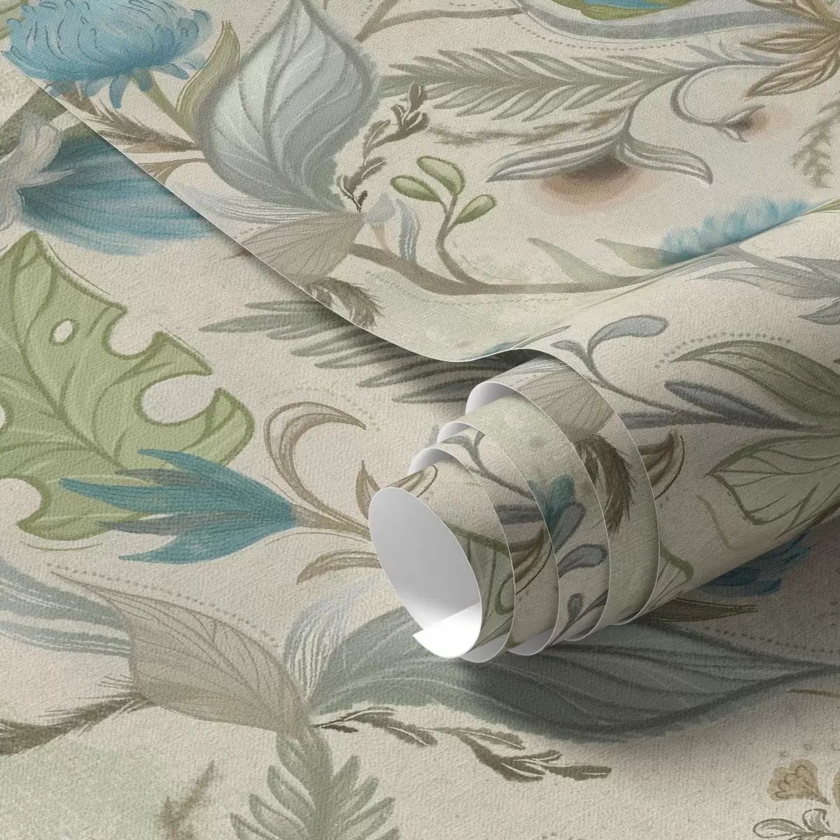 Papel de parede Botões e folhas azuis sobre um fundo bege claro Nr. a00930