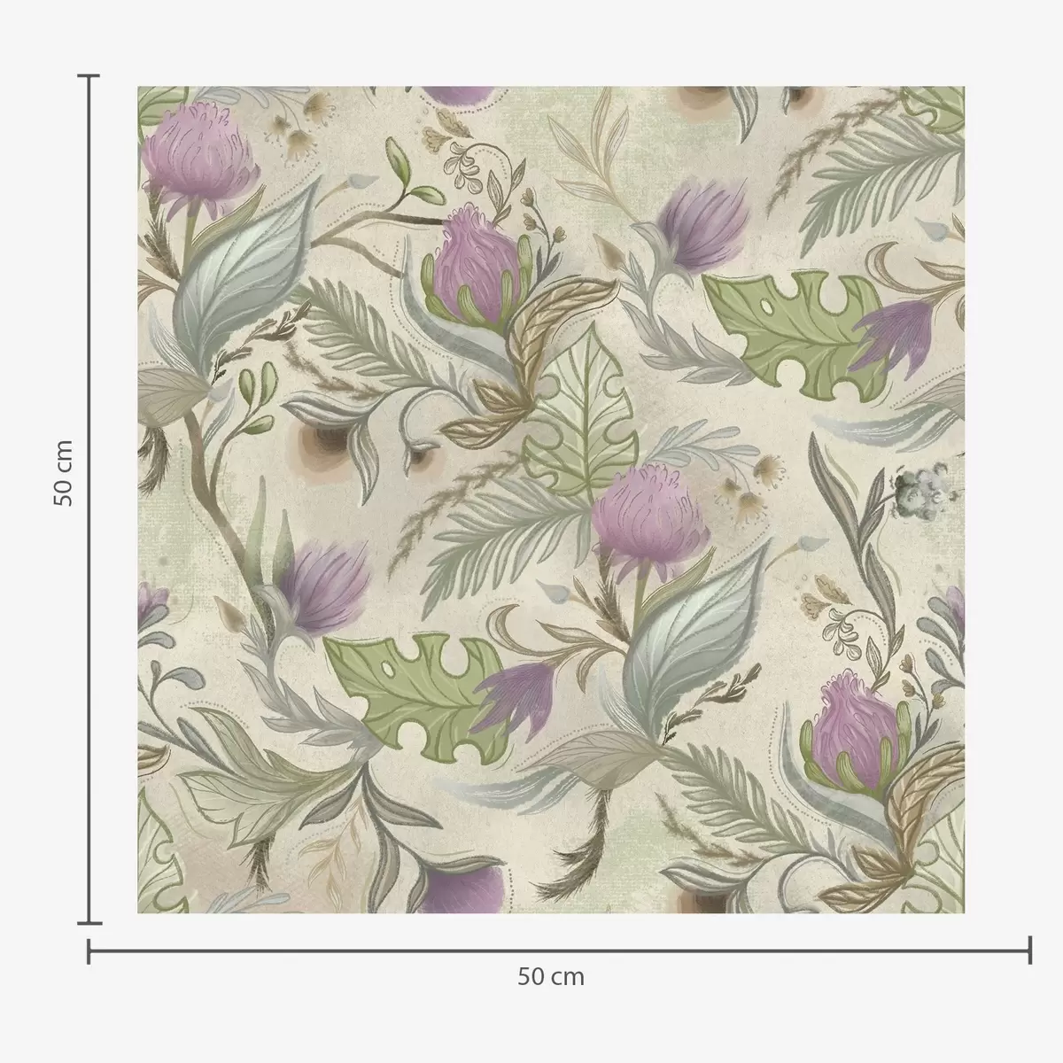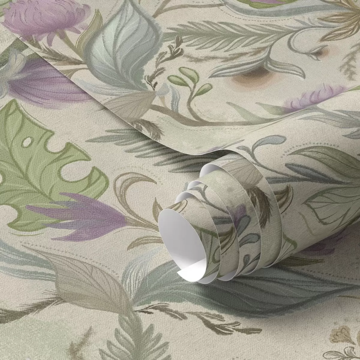 Papel de parede Botões lilás e folhagem suave sobre fundo creme Nr. a00930v2