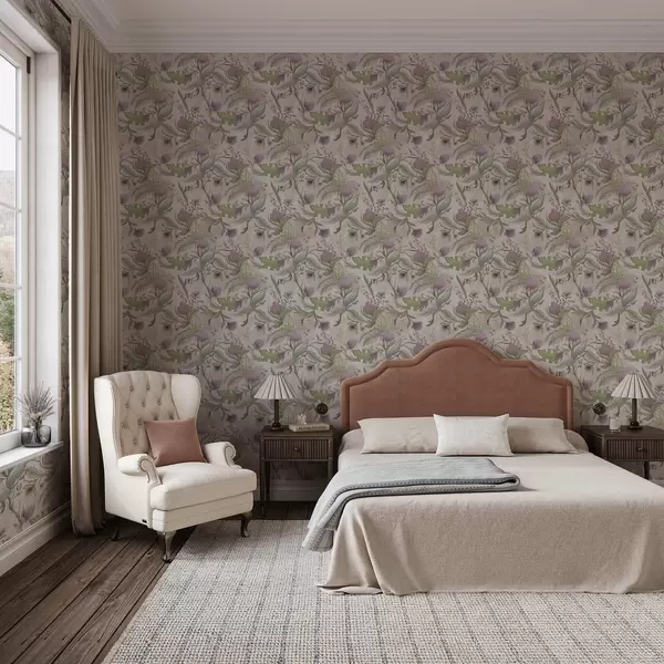 Papel de parede Flores silvestres lilás e folhas sobre um fundo em pó Nr. a00930v3