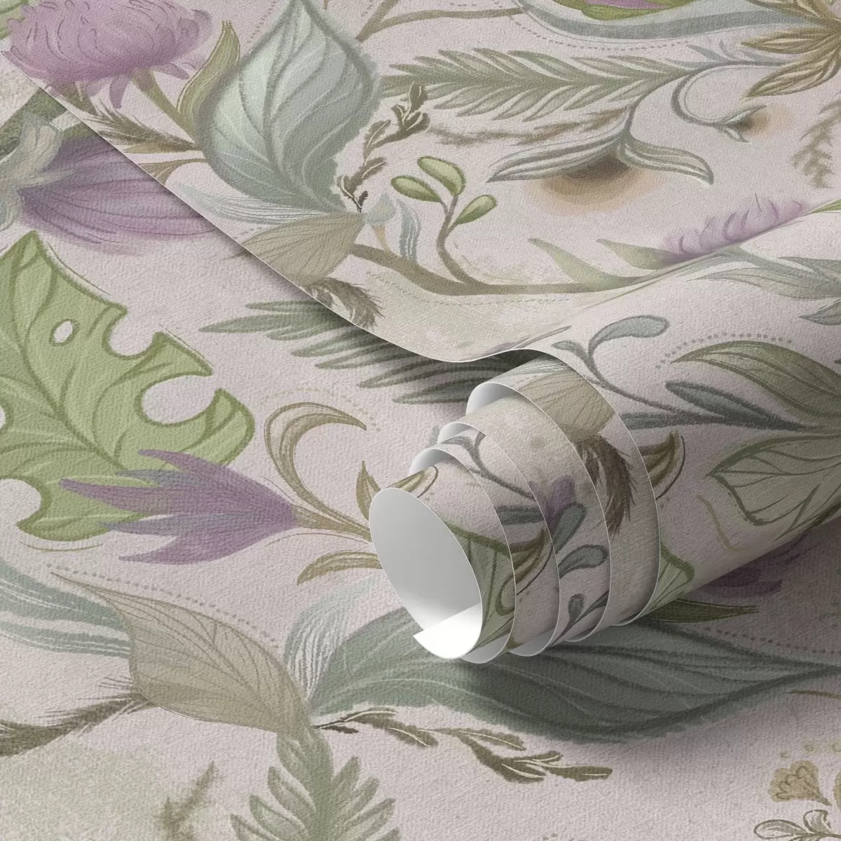 Papel de parede Flores silvestres lilás e folhas sobre um fundo em pó Nr. a00930v3