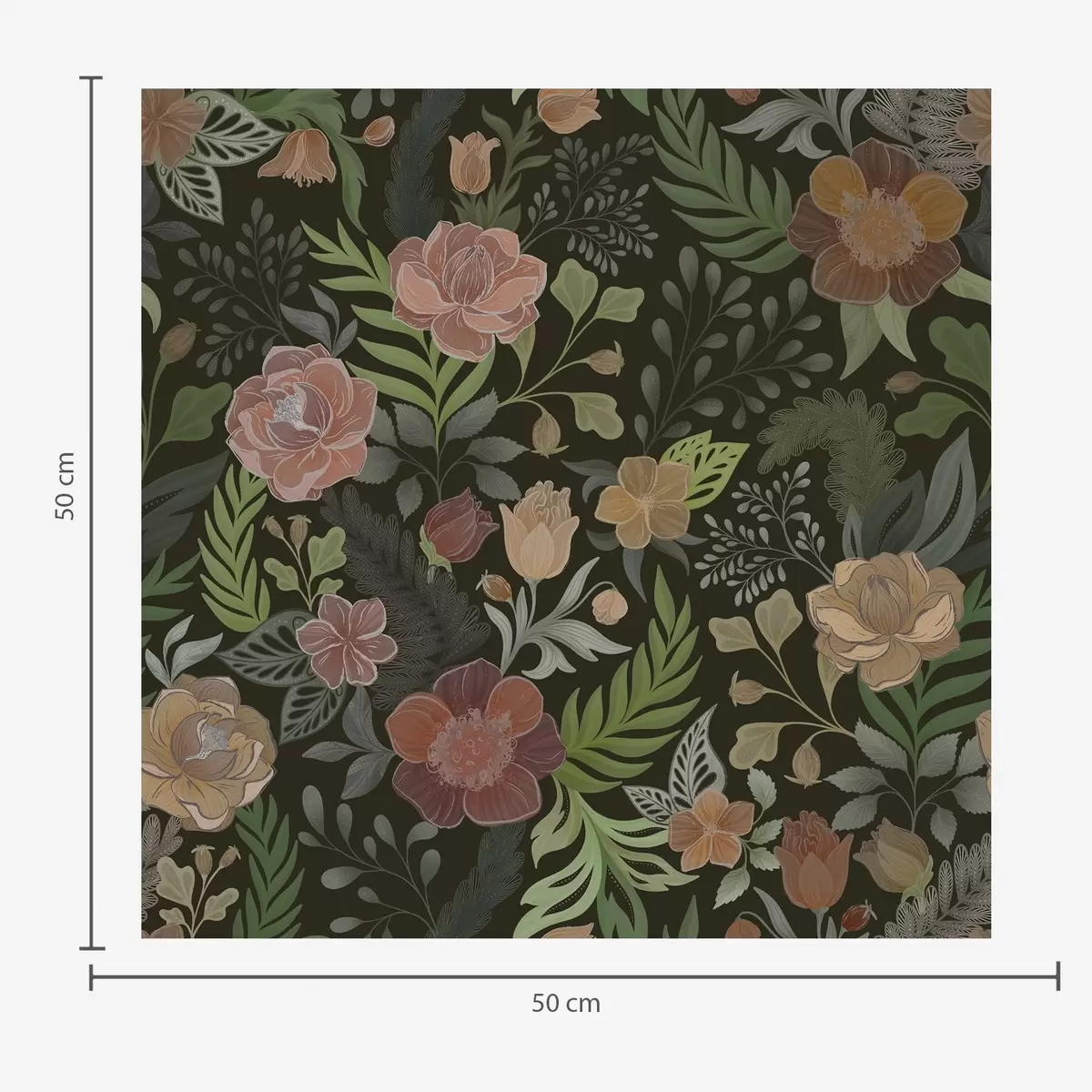 Papel de parede Flores exuberantes e vegetação em um fundo escuro profundo a00932