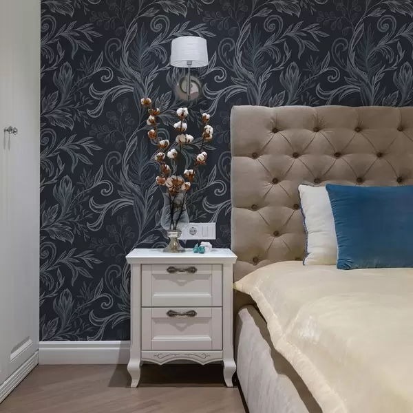 Papel de parede Folhas enroladas em índigo escuro com sombreamento desenhado à mão Nr. a00935