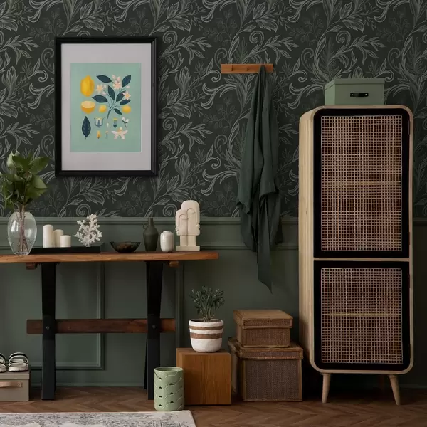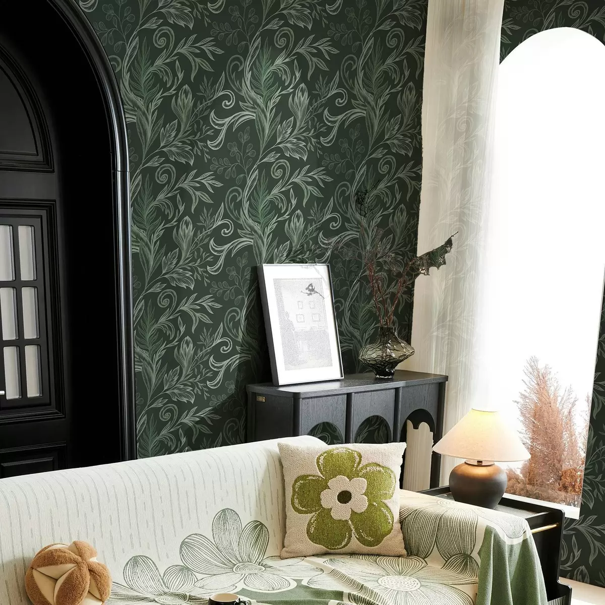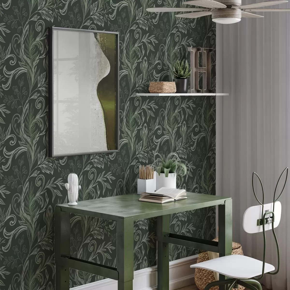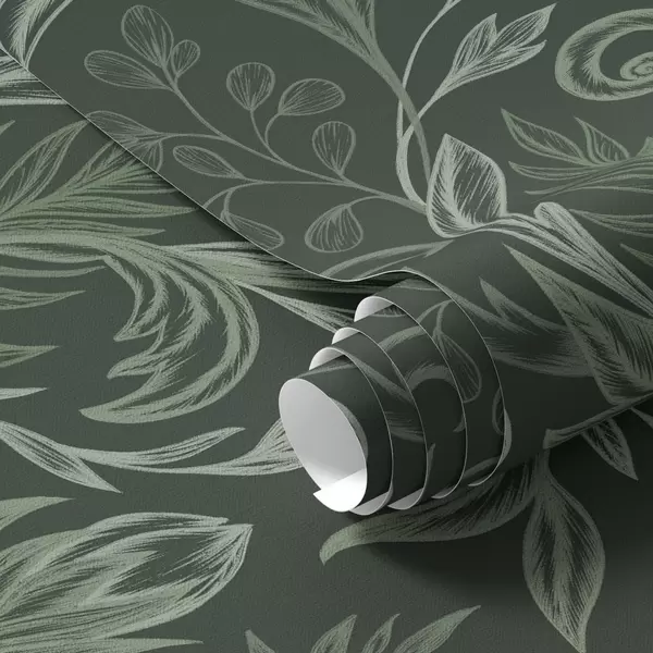 Papel de parede Folhas enroladas da floresta profunda em tons de verde calcário Nr. a00935v2