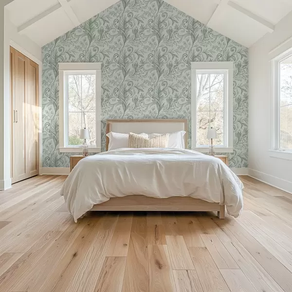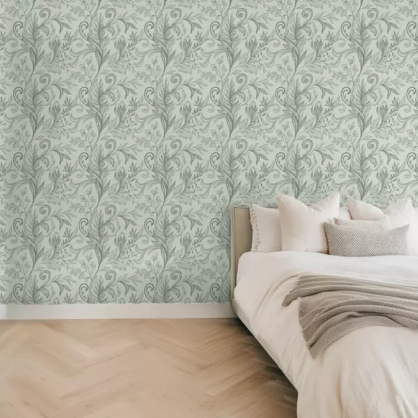Papel de parede Folhas suaves de hortelã enroladas em delicadas linhas cinza-esverdeadas Nr. a00935v3