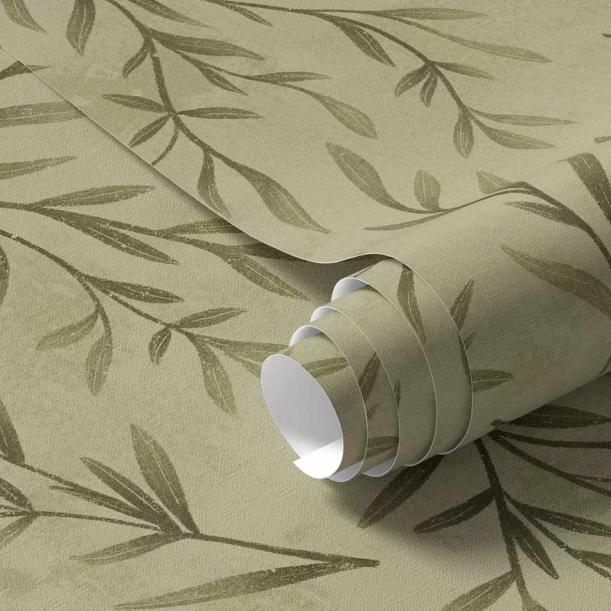 Papel de parede Raminhos de oliveira sobre um fundo texturado em tons suaves de amarelo-esverdeado Nr. a00936