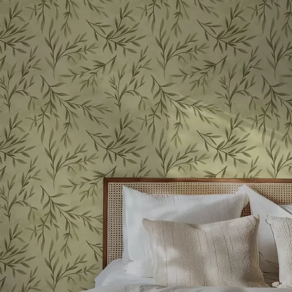 Papel de parede Raminhos de oliveira sobre um fundo texturado em tons suaves de amarelo-esverdeado Nr. a00936