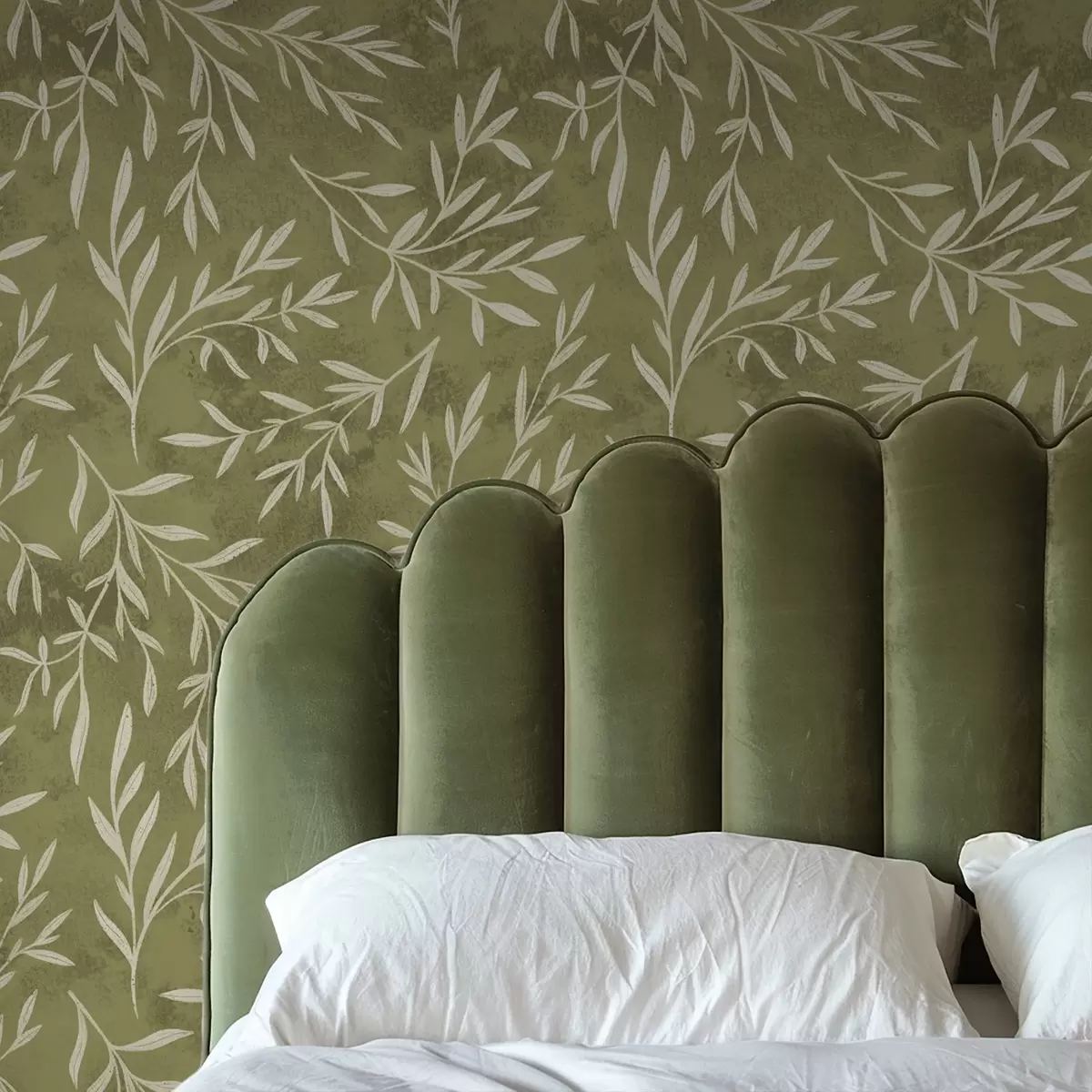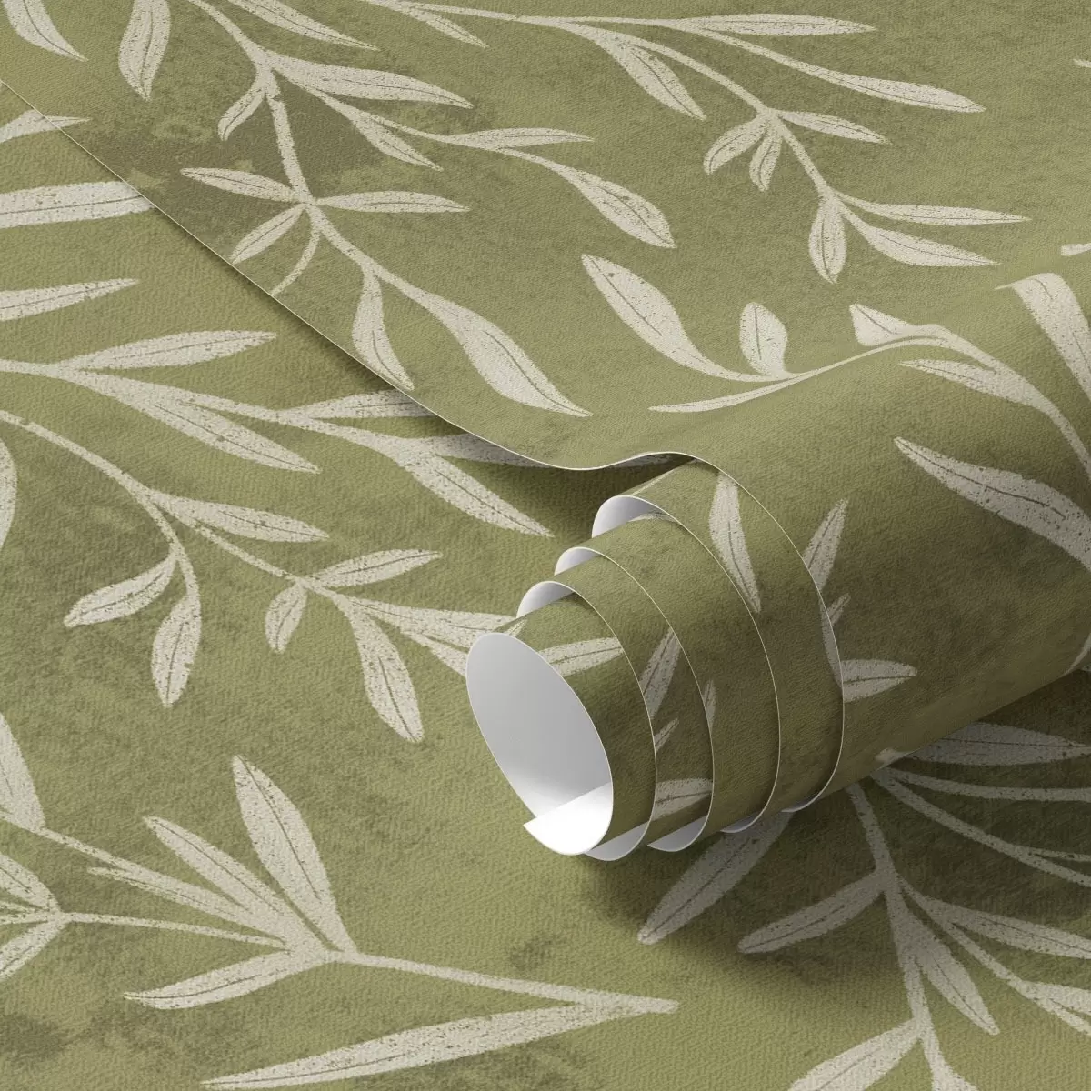 Papel de parede Raminhos brancos cremosos sobre um fundo texturado em tom azeitona quente Nr. a00936v1