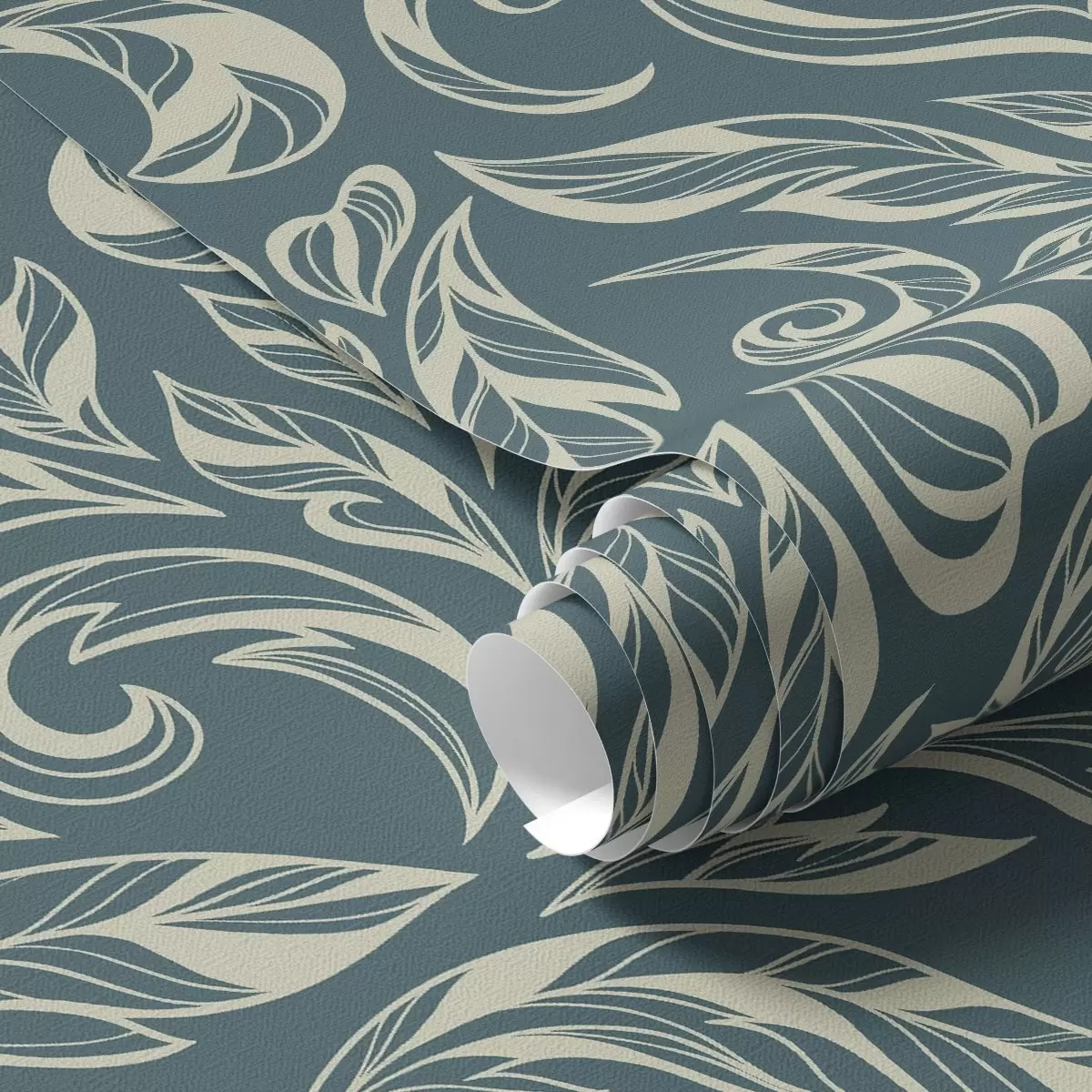 Papel de parede Padrão folhoso de linhas claras sobre fundo azul-acinzentado Nr. a00940