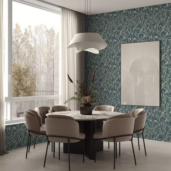 Papel de parede Padrão folhoso de linhas claras sobre fundo azul-acinzentado Nr. a00940
