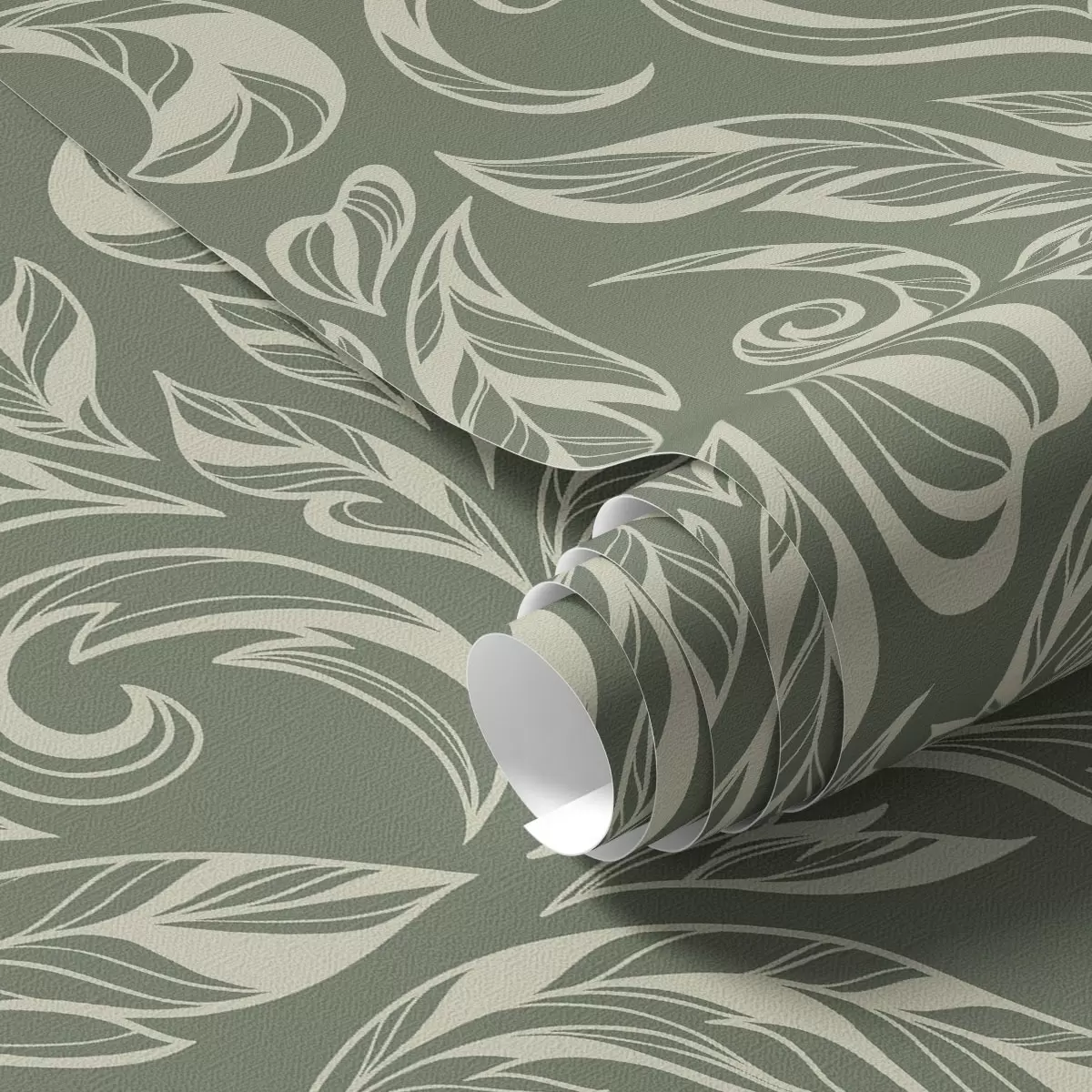 Papel de parede Ornamento folhoso creme sobre fundo cinza-esverdeado Nr. a00940v2