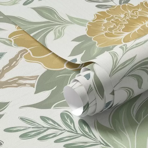 Papel de parede Grandes peônias amarelas e folhagem sobre um fundo claro Nr. a00941