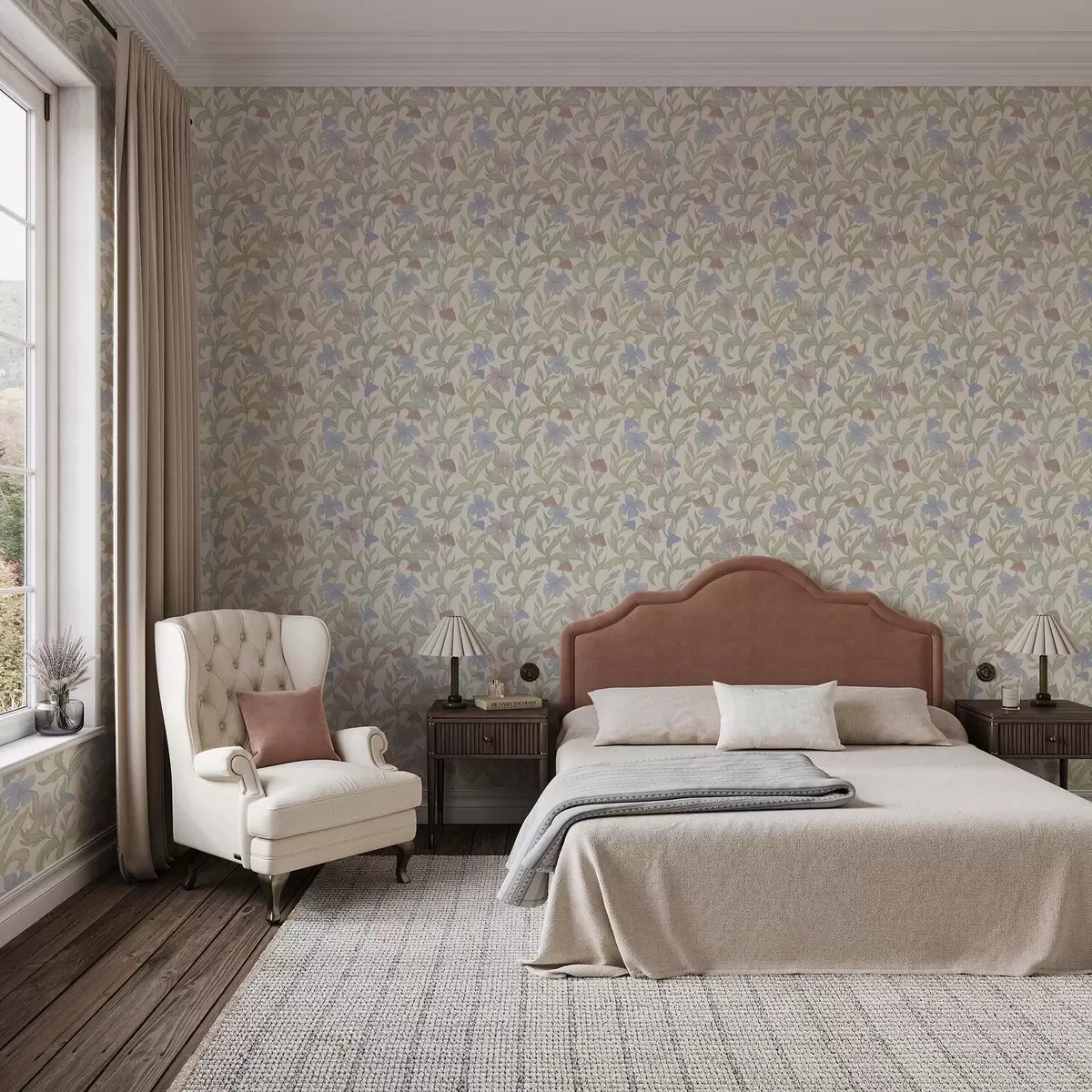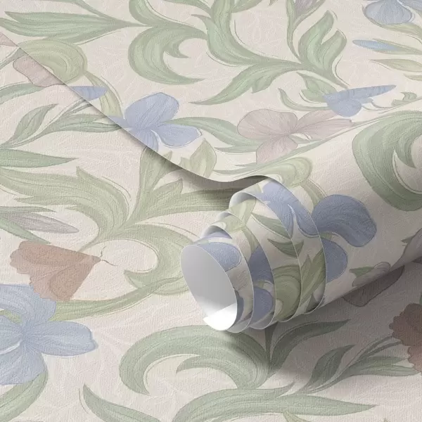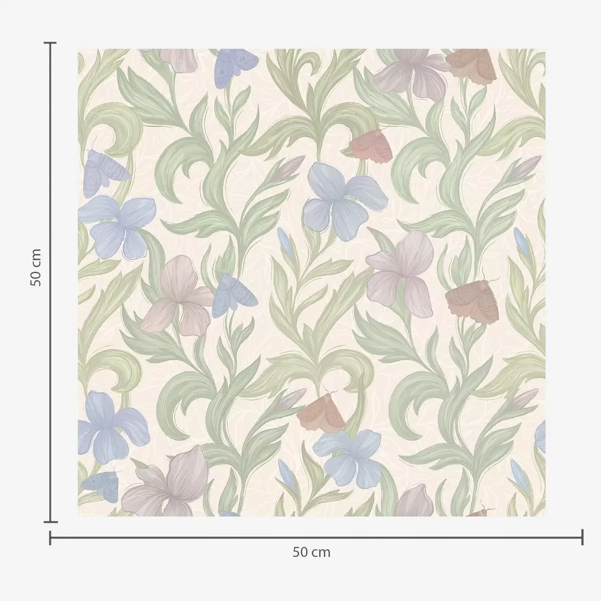 Papel de parede Flores e borboletas em tons pastel sobre fundo creme Nr. a00944