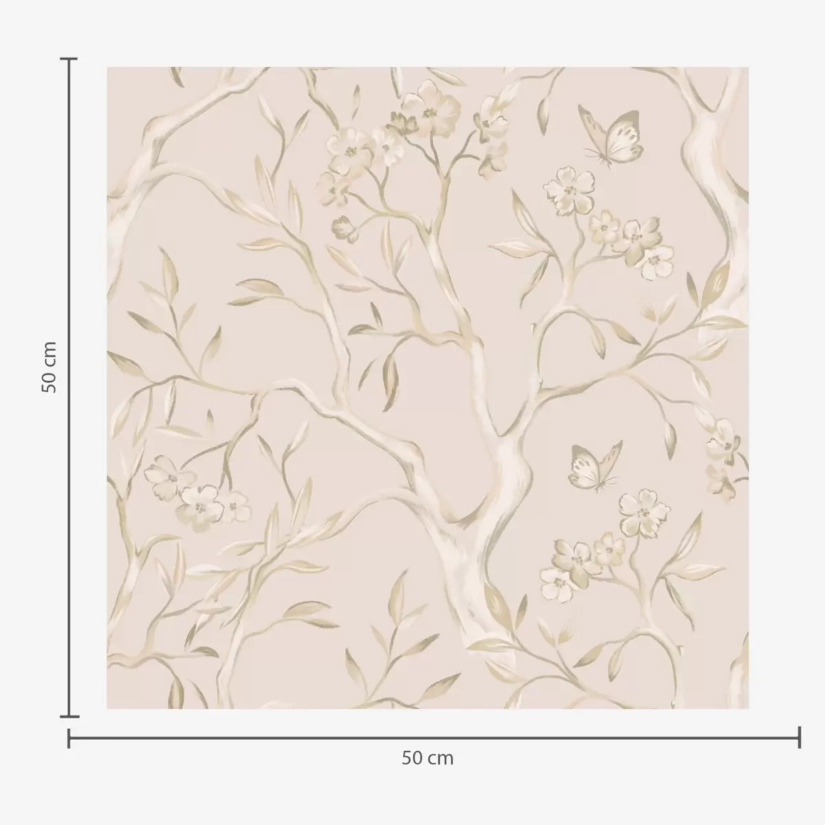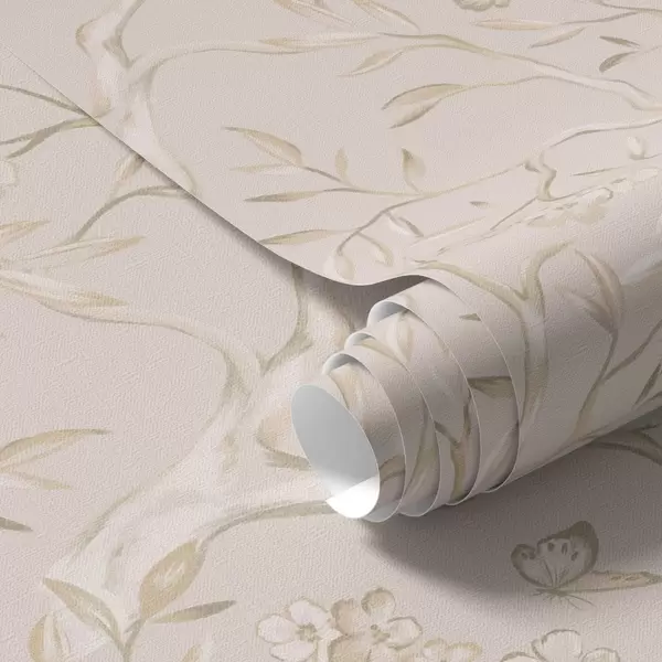 Papel de parede Galhos floridos bege com borboletas em um fundo suave Nr. a00951v2