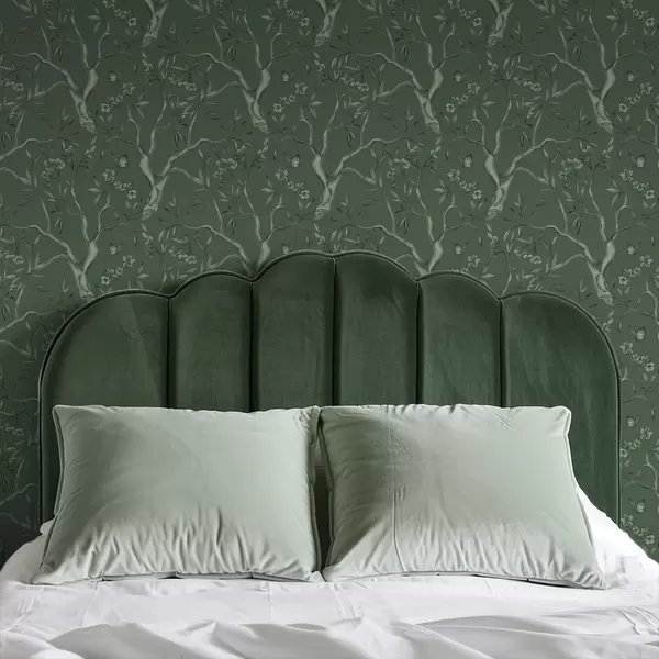 Papel de parede Galhos verdes floridos com borboletas em um fundo escuro Nr. a00951v3