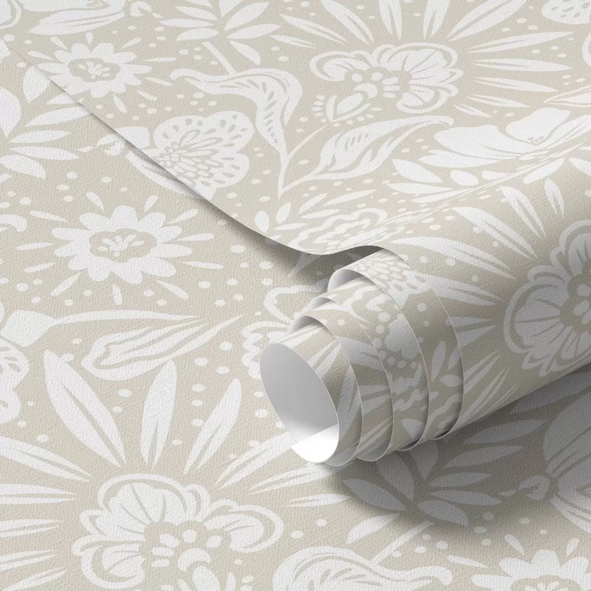 Papel de parede Ornamento floral linear branco sobre fundo bege Nr. a00956