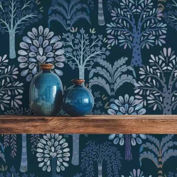 Papel de parede Floresta noturna com árvores decorativas em tons de azul Nr. a00960v2