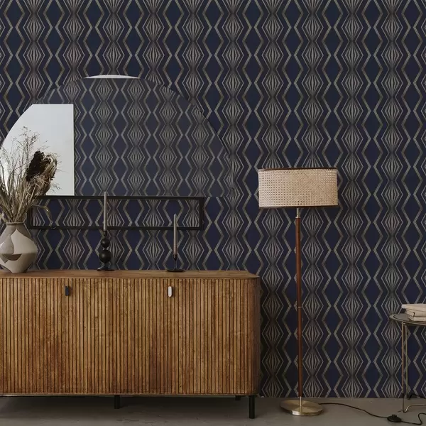 Papel de parede Fundo azul escuro com losangos geométricos e ziguezagues Nr. a00974v2